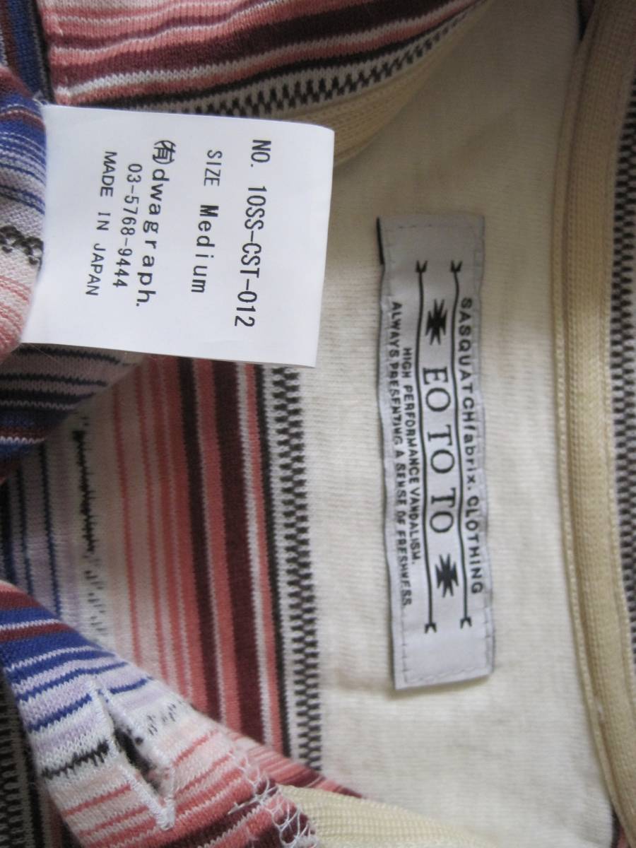 SASQUATCH fabrix. EO TO TO サスクワッチファブリックス エオトト プルオーバー半袖シャツになります。特に目立つ傷、汚れはありません。サイズはM、綿100%、日本製です。肩幅39cm、袖丈21cm、身幅43cm、着丈63cmです。素人の採寸ですので若干の誤差、商品状態はご了承ください。 落札後は、ノークレーム、ノーリターン、ノーキャンセルでお願いします。 発送方法は定形外かレターパックです。ほかにも色々出品していますので良かったらご覧ください。