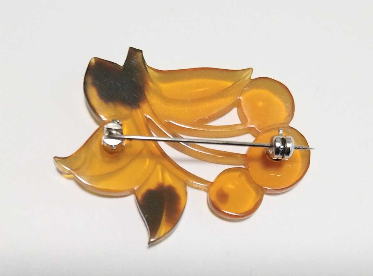 ☆ 本鼈甲 べっ甲 さくらんぼ ブローチ ☆  鼈甲 サクランボ ブローチ