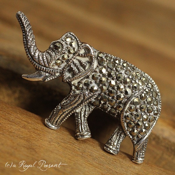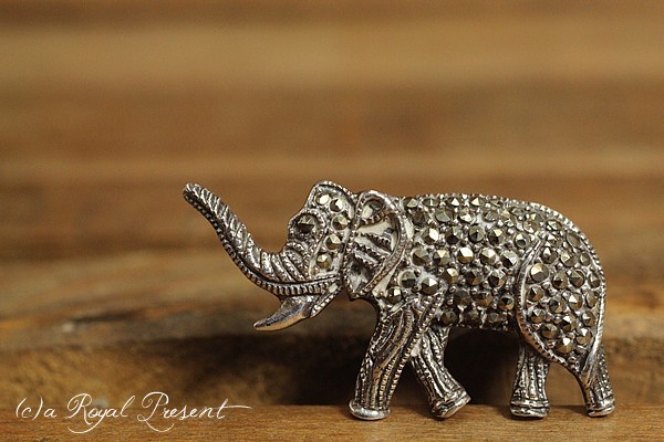 アール・デコ時代(1920年から30年代)の | 象のブローチです。 made inUSAです。 素材は925スターリングシルバー、マーカサイト石です。 サイズは3.2×1.7cmです。 重さは4.2gです。 写真の通り、おおむねいい状態です。 細部まで丁寧に作りこまれたゾウのブローチです。 全体に埋め込まれたマーカサイト石の輝きがたいへん豪華な印象です。 アンティークの商品ですので 経年による小さな凹みや細かい傷などは どうぞ味わいや魅力としてご理解くださいませ。 R-4096 |