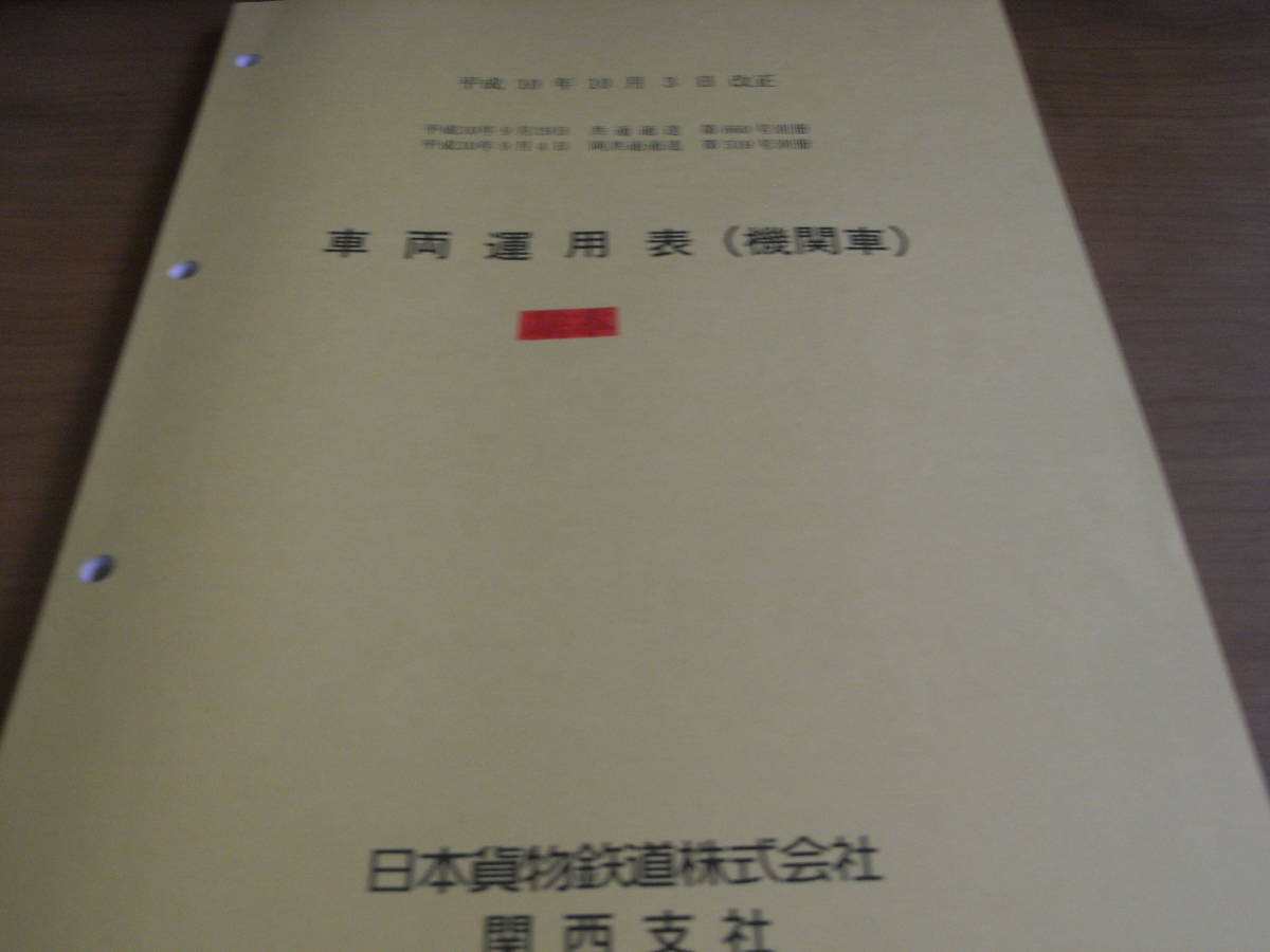 平成10年10月3日改正 車両運用表(機関車) 日本貨物鉄道株式会社関西支社