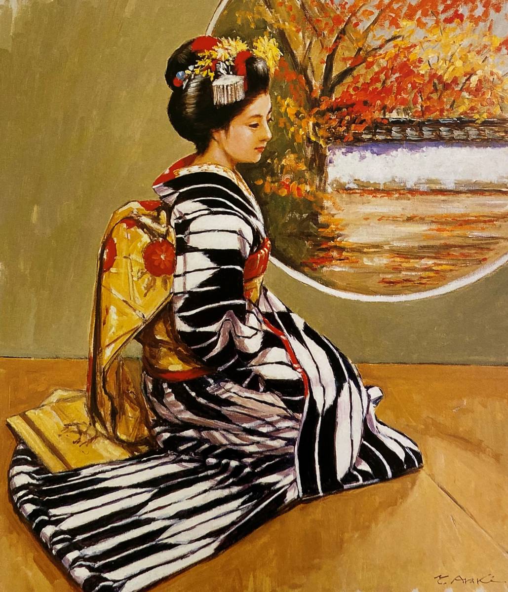 荒木義太郎、【舞妓(京の秋)】、希少な画集より、新品高級額、マット額装付、送料込み