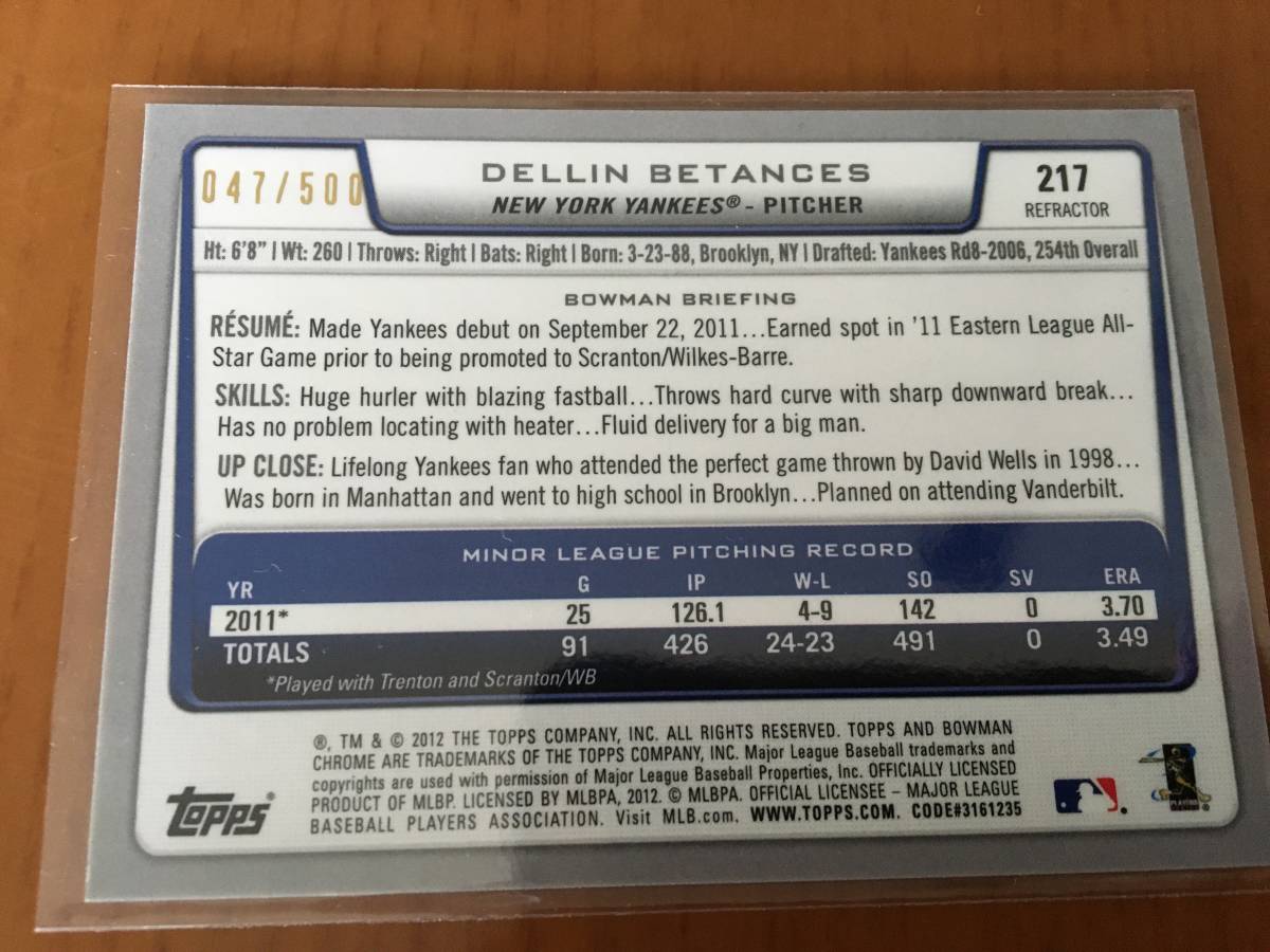 【Dellin Betances】2012 Bowman Chrome RC Ref Auto 47/500