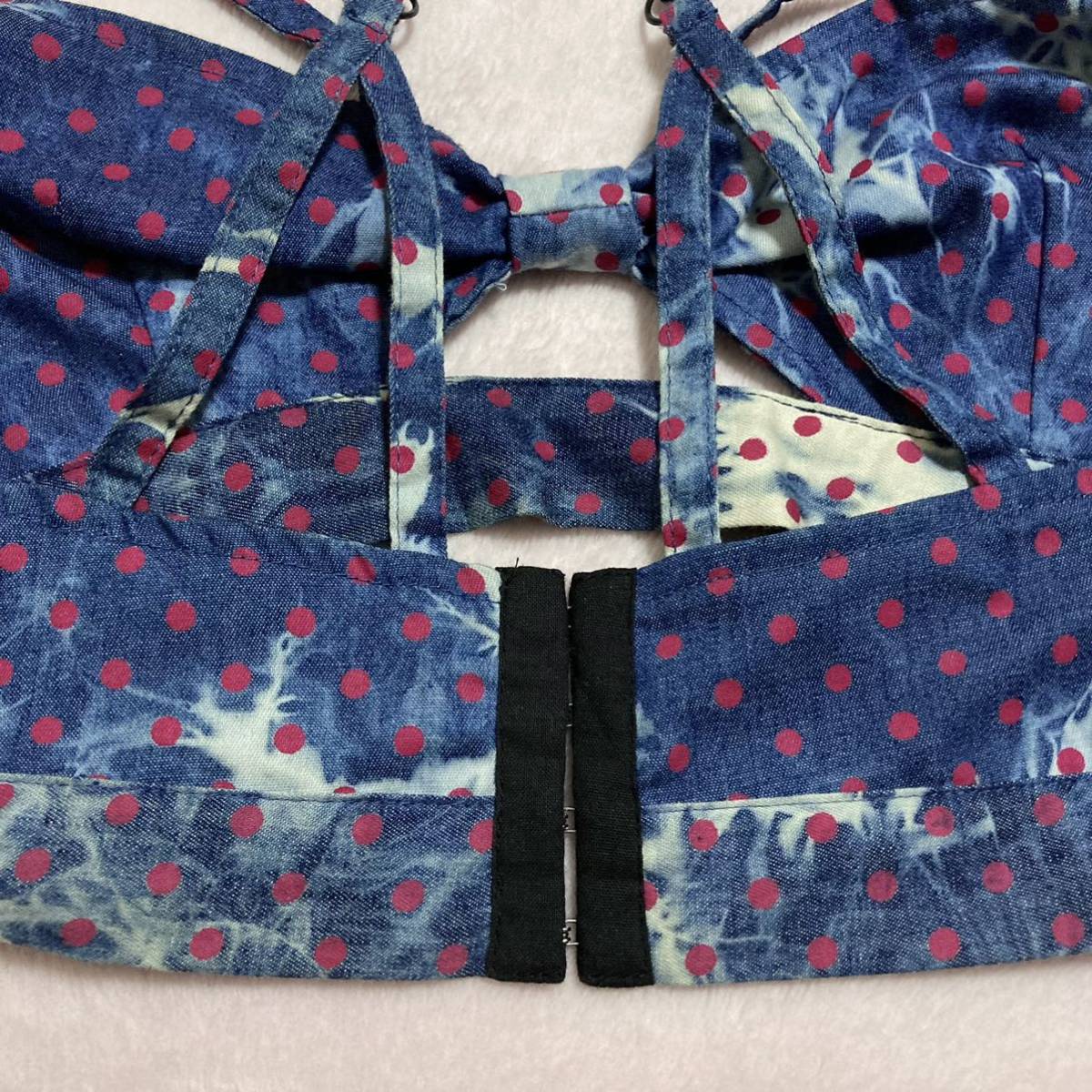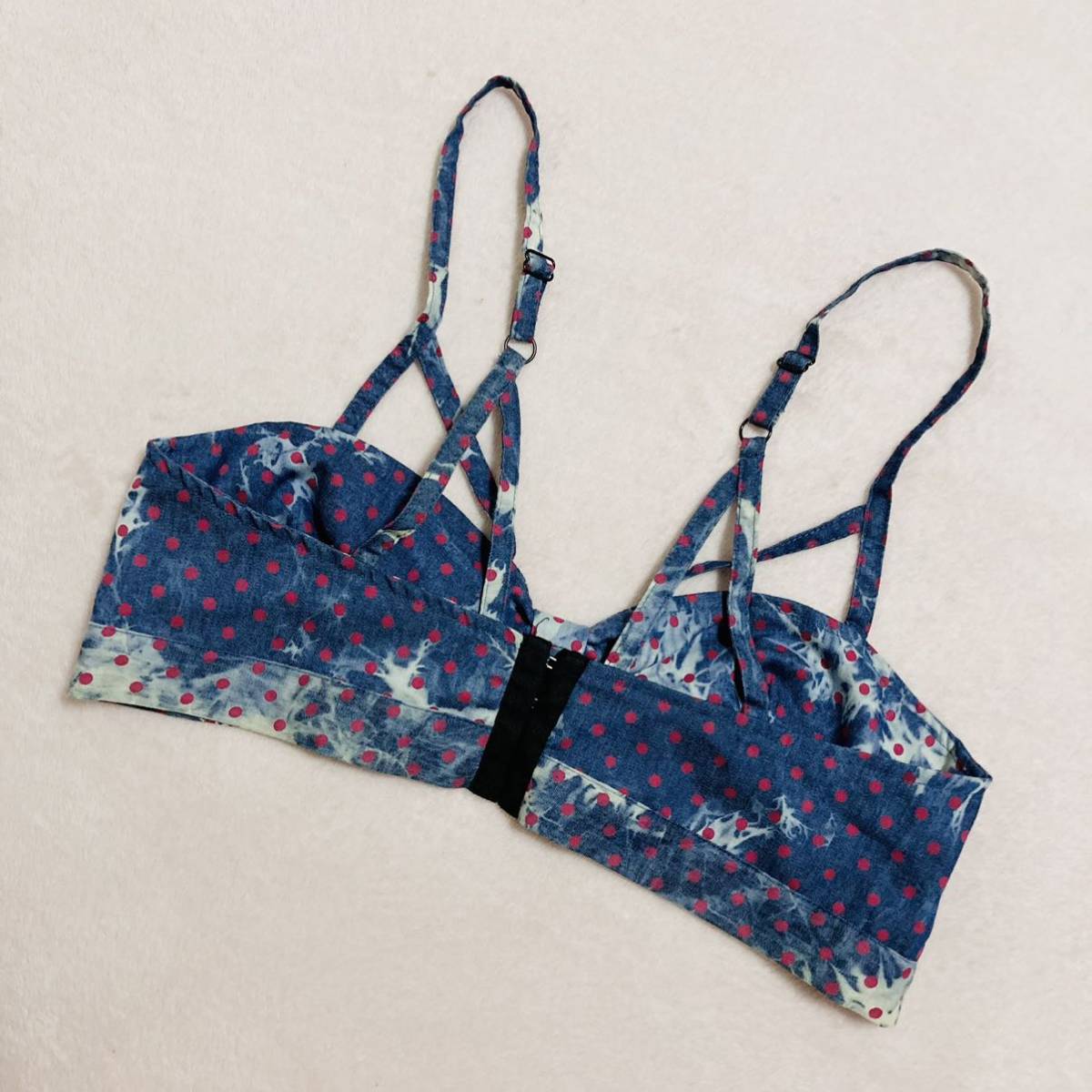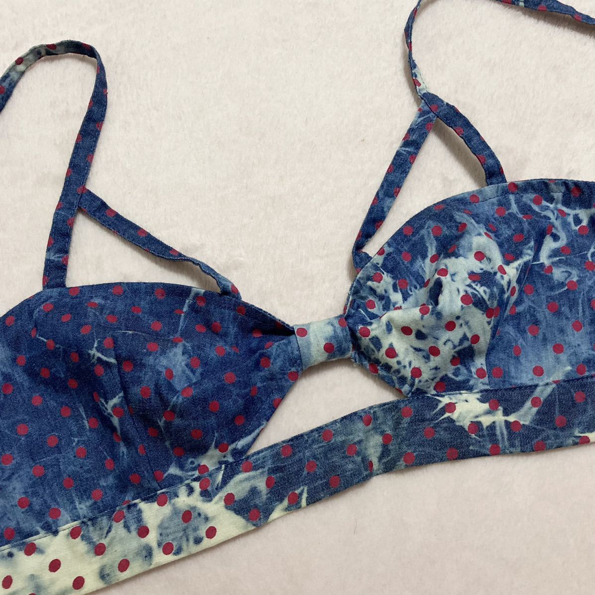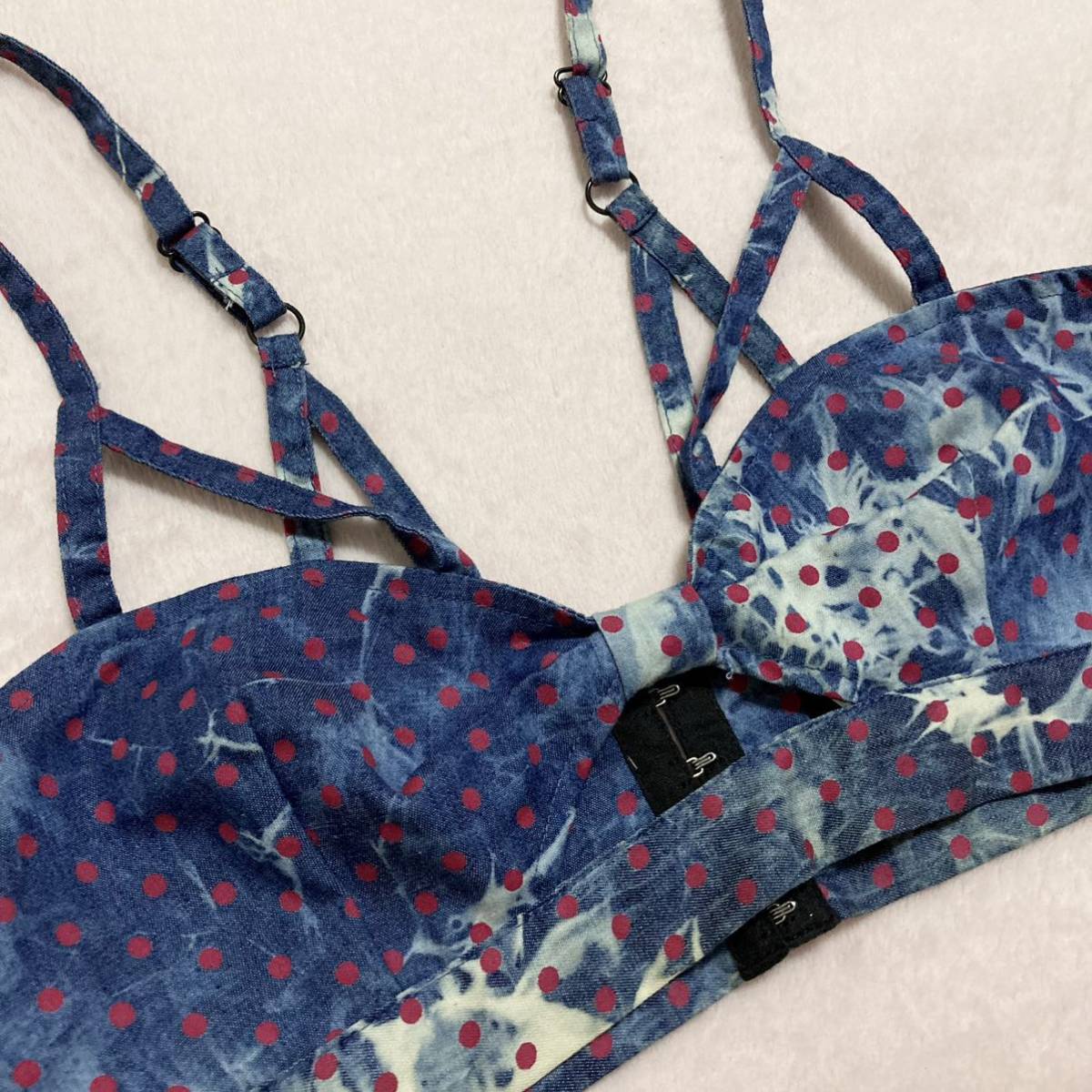 ハーネスデザインがクールでセクシーなブラレット。他と被らないブリーチ模様と赤ドットが可愛いです。