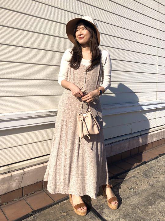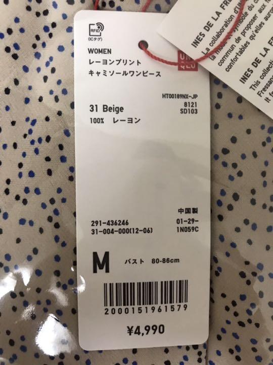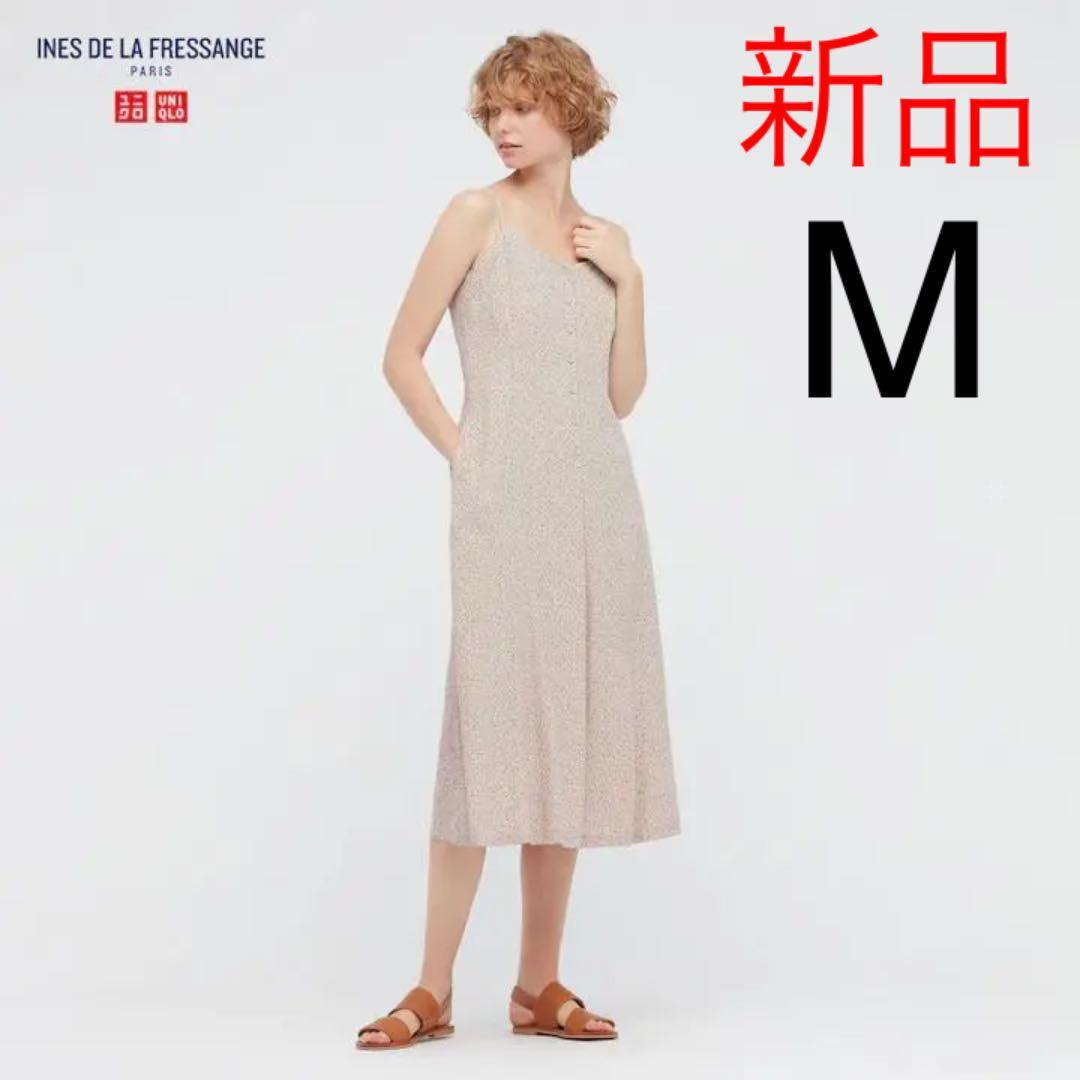 新品 ユニクロ INESコラボ レーヨンプリントキャミソールワンピース Mサイズ ベージュ