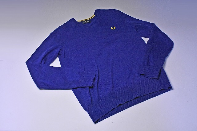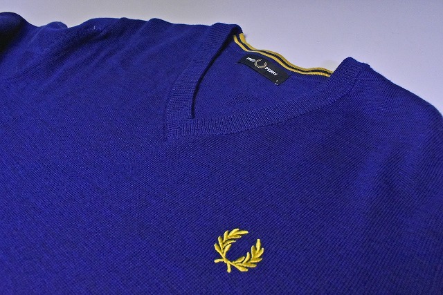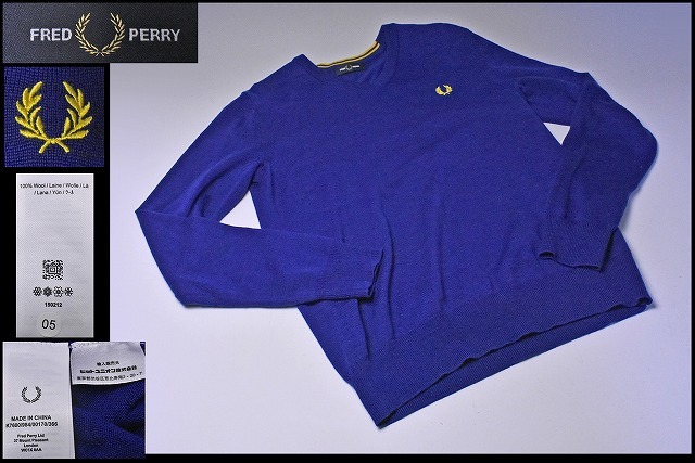 FRED PERRY ★ Vネック 長袖ニット ★ 薄手セーター ★ Sサイズ ★ ブルー ★ 150212 ★
