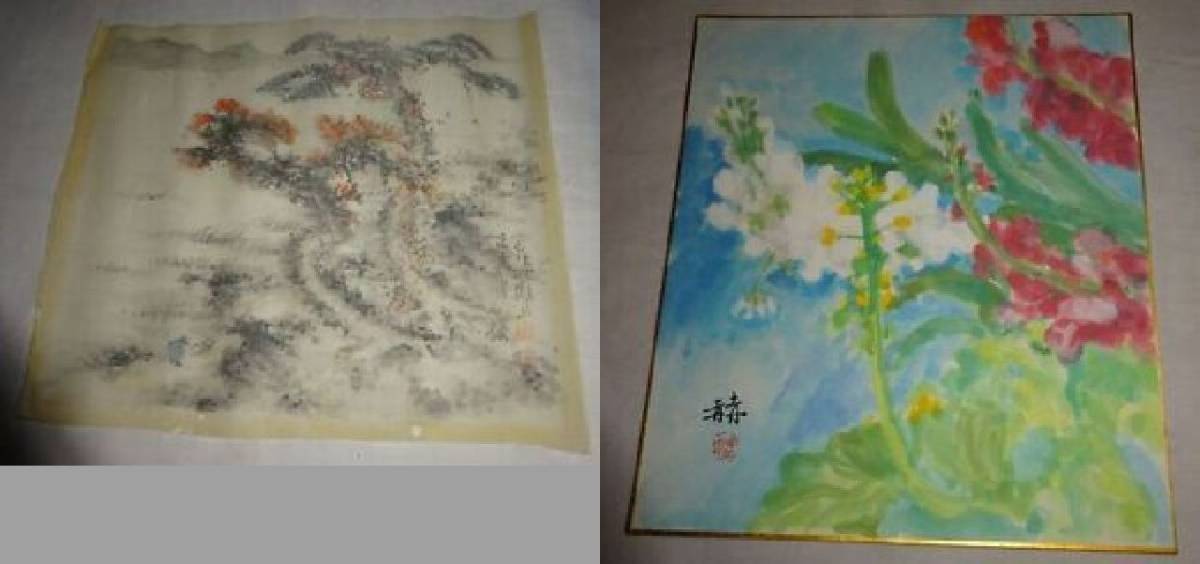 稀少 ヴィンテージ 山水図 絹本 肉筆 まくり 宮沢賢治 雨ニモマケズ 拓本 まくり 花 色紙 セット まとめて 絵画 日本画 書 書道 古美術