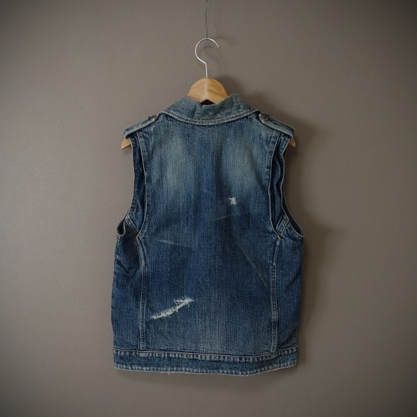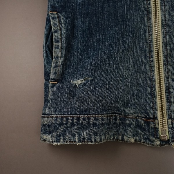 ご覧いただきありがとうございます。 気持ちのよいお取引となるよう心がけておりますので どうぞご安心ください。 RNA/アールエヌエーのダメージデニム/ライダース風ノースリーブジャケットです。 お色はブルー系です。 細部にまでこだわり抜かれたデザインが光る逸品です。 是非、お手に取ってお確かめください。 サイズ表記は M(レディース)です。 実寸も合わせてご参考ください。 ■着丈:56.0 cm ■身幅:41.0 cm ■肩幅:38.0 cm (すべて平置き採寸です。多少の誤差はご了承下さい。) 中古品のためそれなりの使用感はございますが、まだまだお使いいただけるかと思います。 L-17576 |