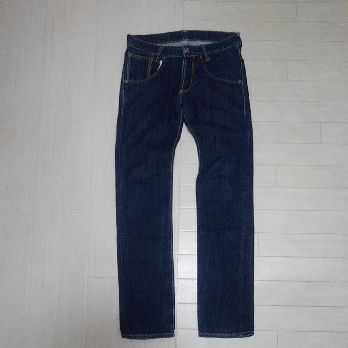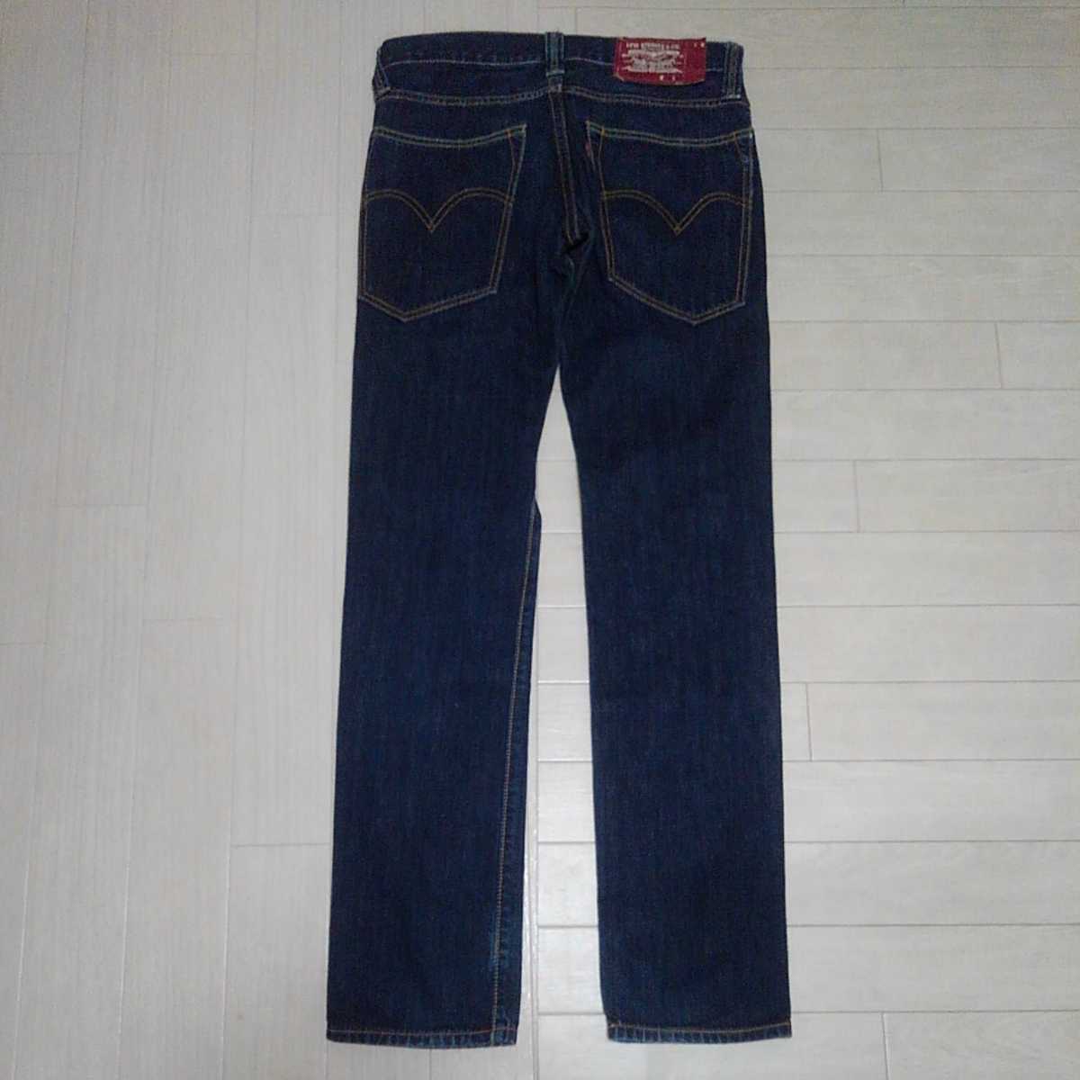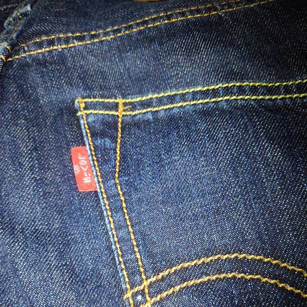 色は 濃紺インディゴブルー、レッドタブ、赤紙パッチ、細身でタイトなシルエットのストレート ローライズ、かっこいいです。