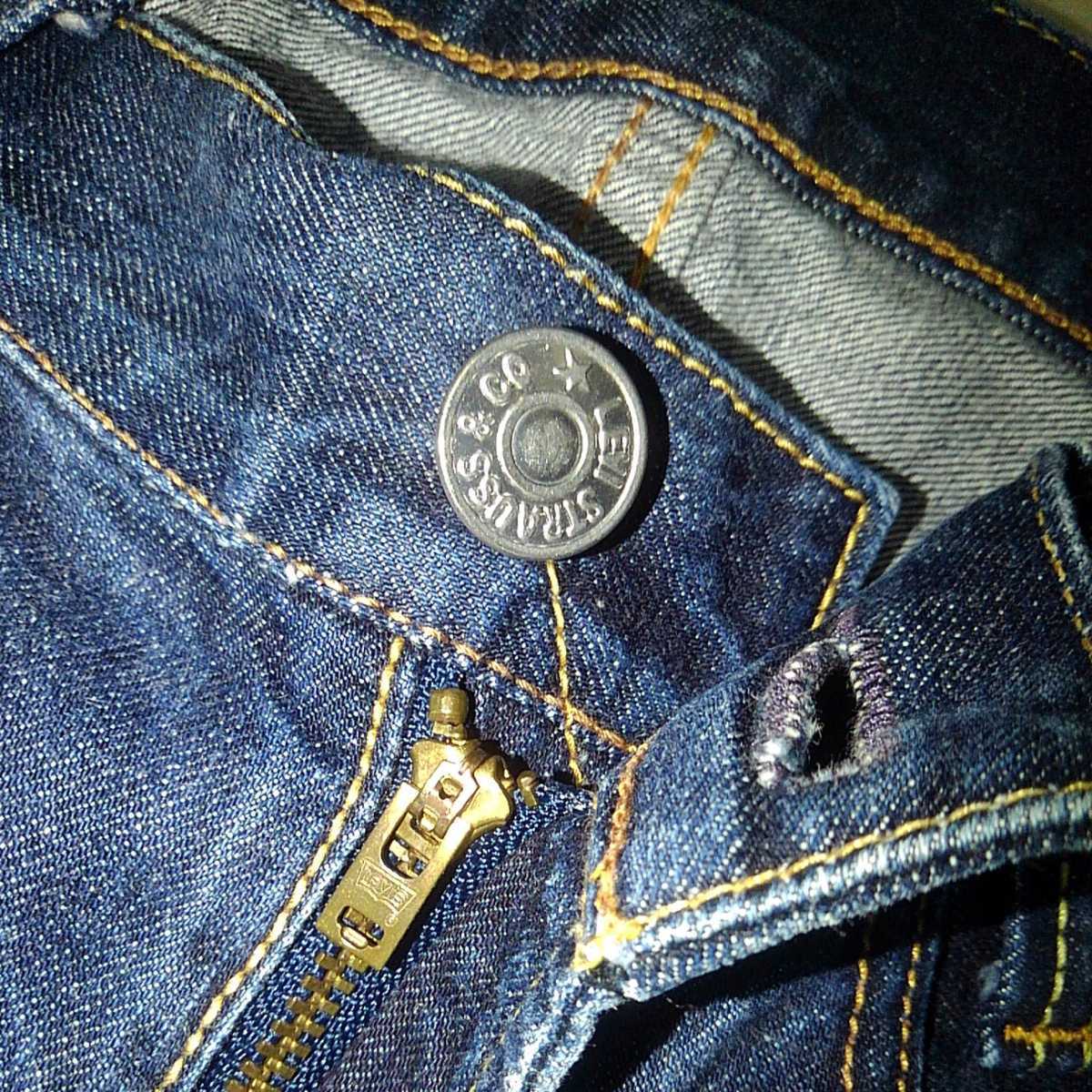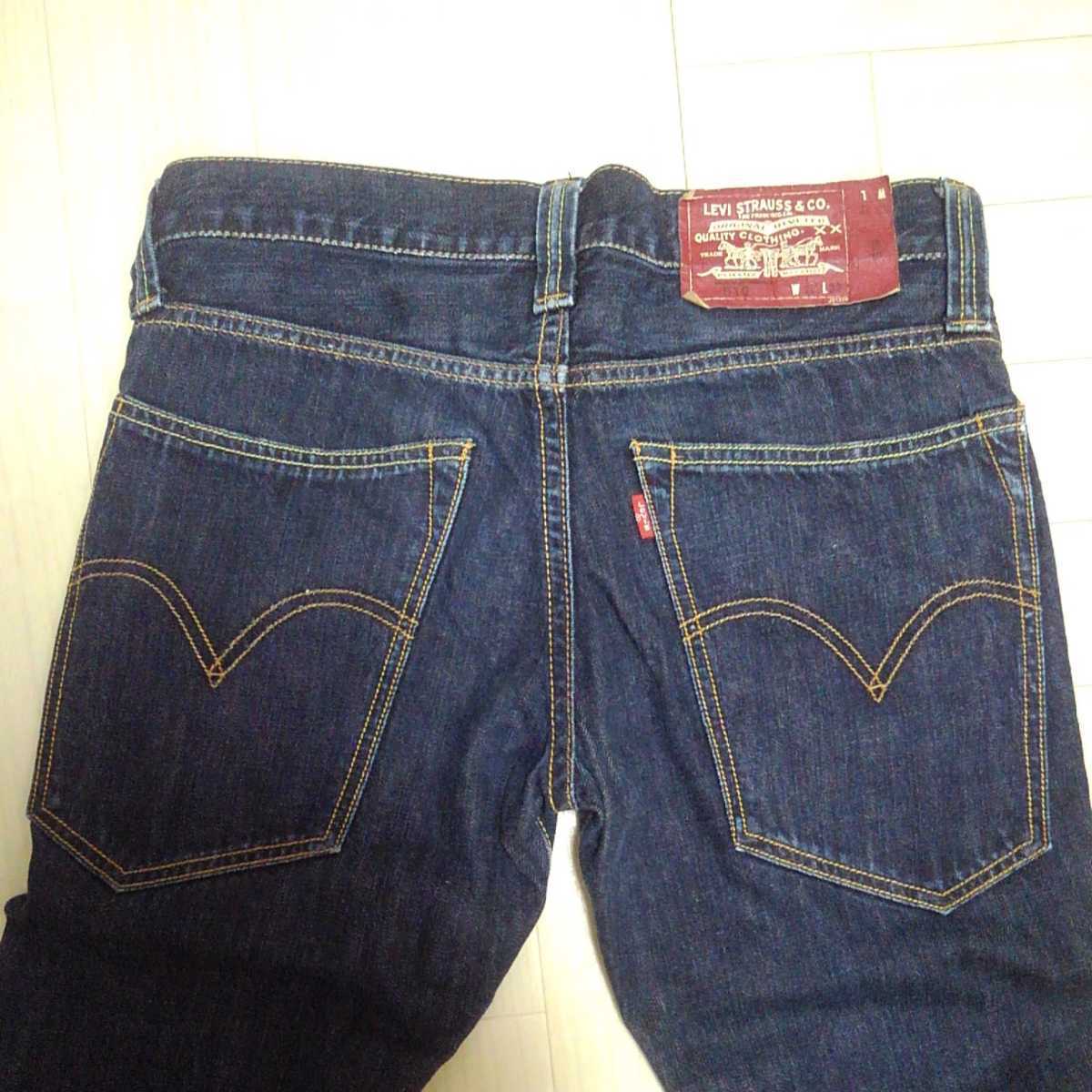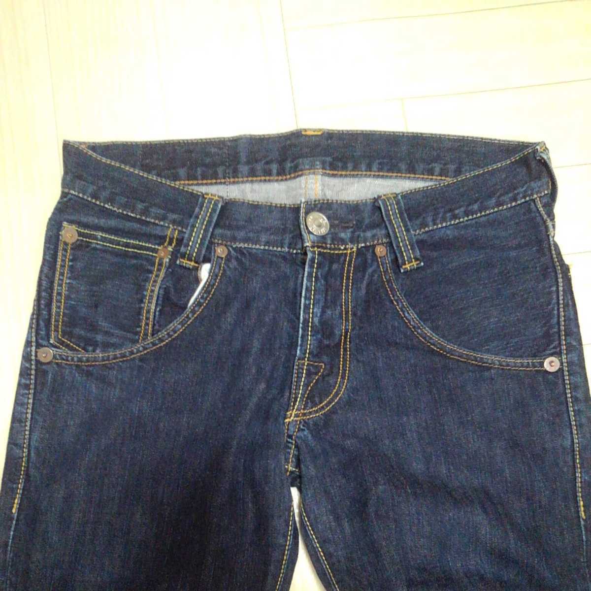 色は 濃紺インディゴブルー、レッドタブ、赤紙パッチ、細身でタイトなシルエットのストレート ローライズ、かっこいいです。