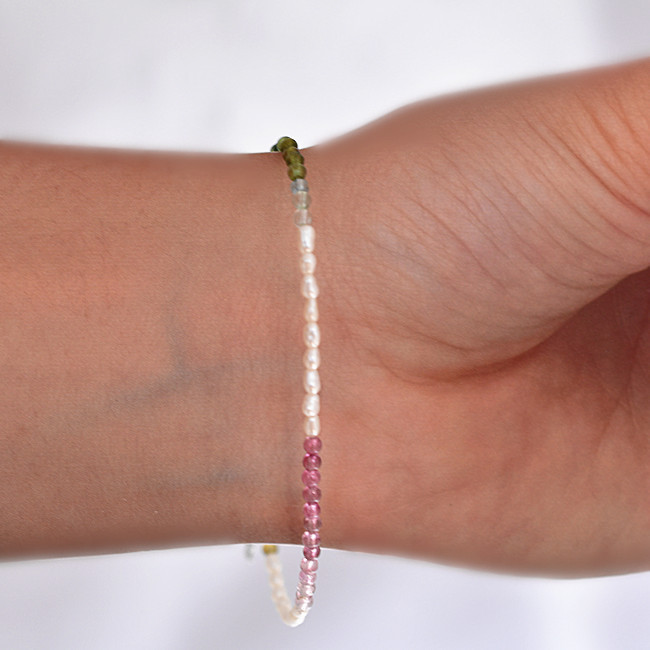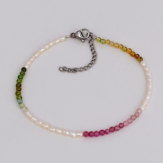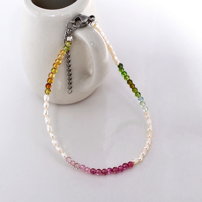 ●金属素材:ステンレス。●淡水真珠:粒約2.5X3mm、天然の真珠であるため。それぞれのサイズはわずかに異なります。予めご了承ください。●ストーン:トルマリン、直径約2.5mm。●形、色:写真に参照。●サイズ:長さ17cm、 アジャスター3.5cm、全長約20.5cm。