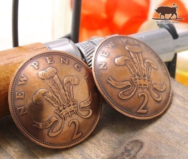*コンチョ ループ式 2個セット イギリス 2ペンス 羽根の紋章 25mm