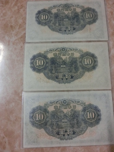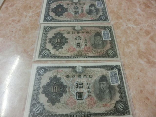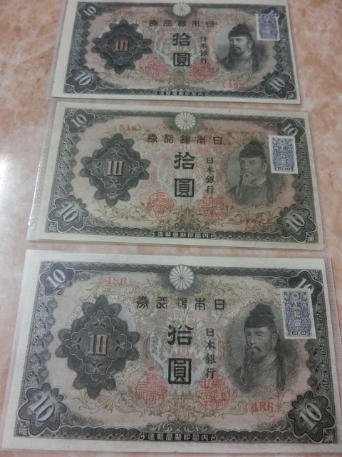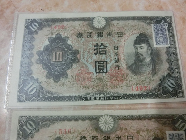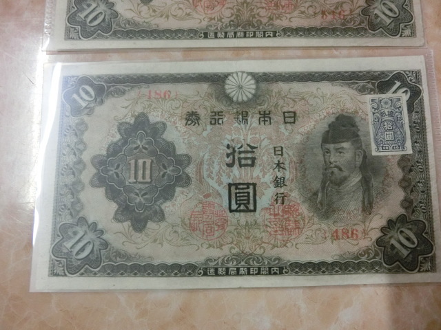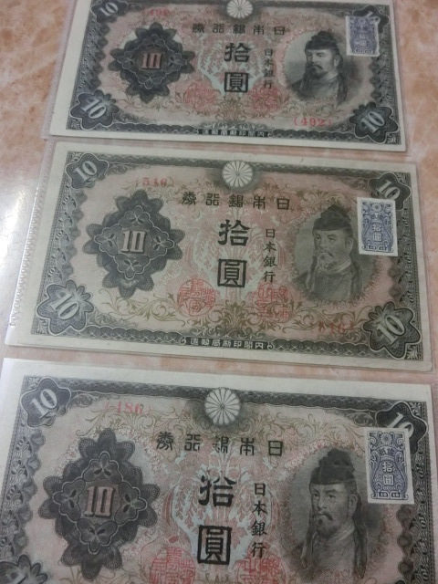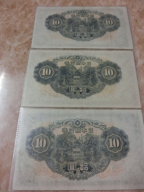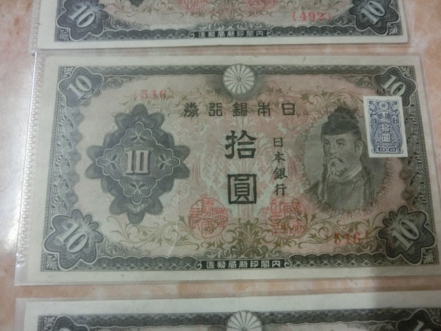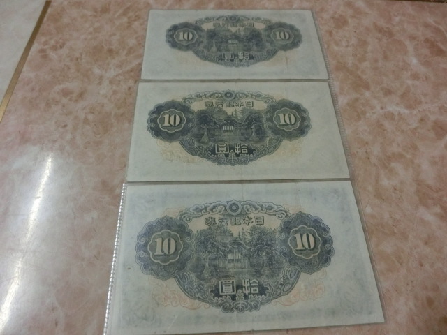 改正不換紙幣10円 3次10円の証紙付で極美品~上美品を3枚セットです。