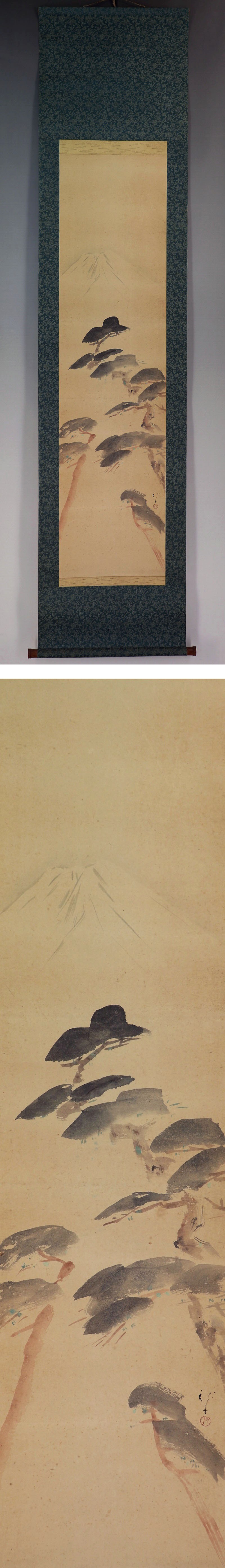 | №2105068【模写】川端龍子【富士に松】◆紙本◆合箱◆掛軸 | |