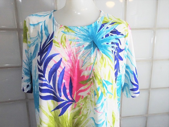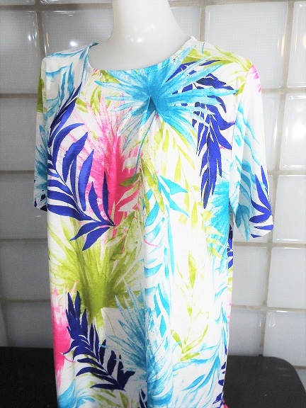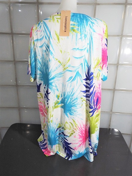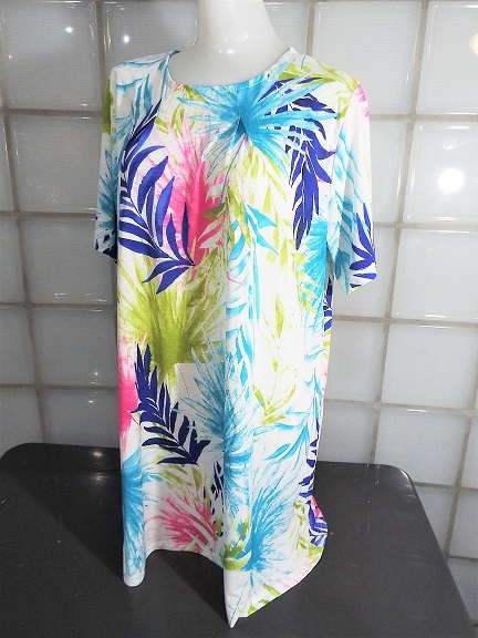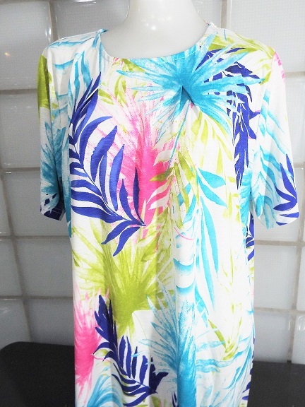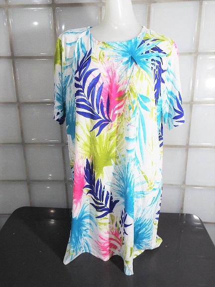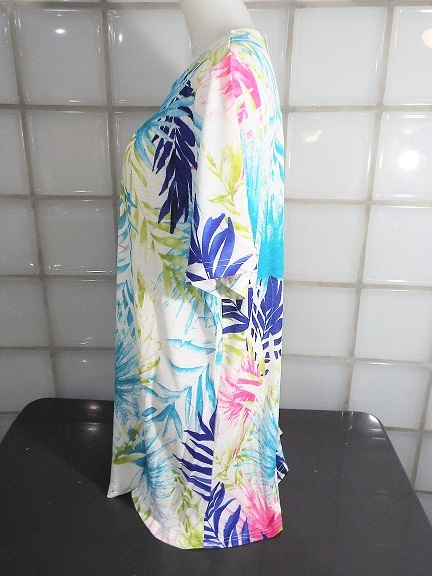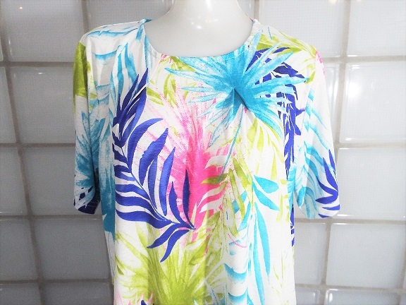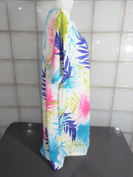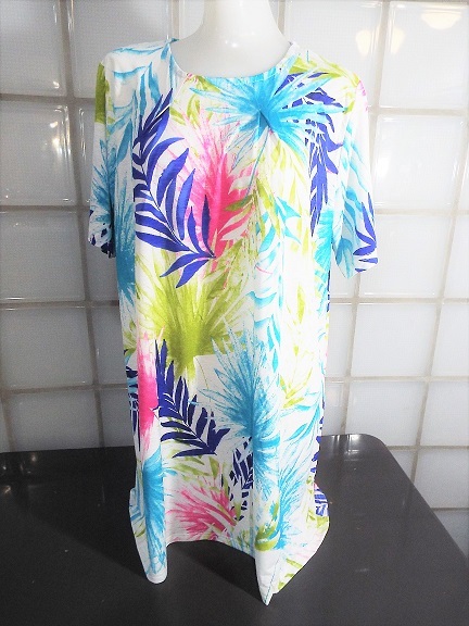 I conosophia ホワイト 椰子柄 M~Lサイズ 半袖 チュニック ポリエステル95%、ポリウレタン5% 新品