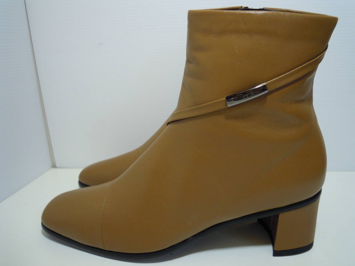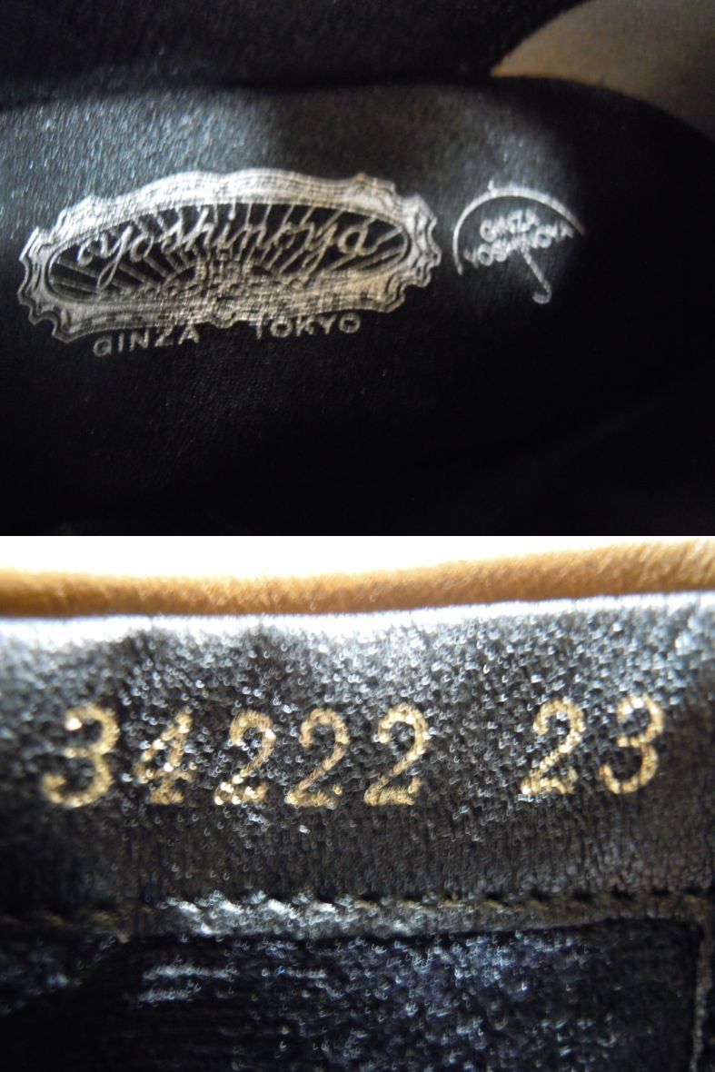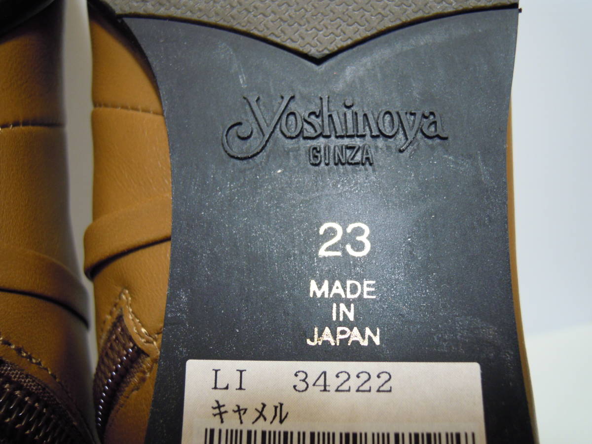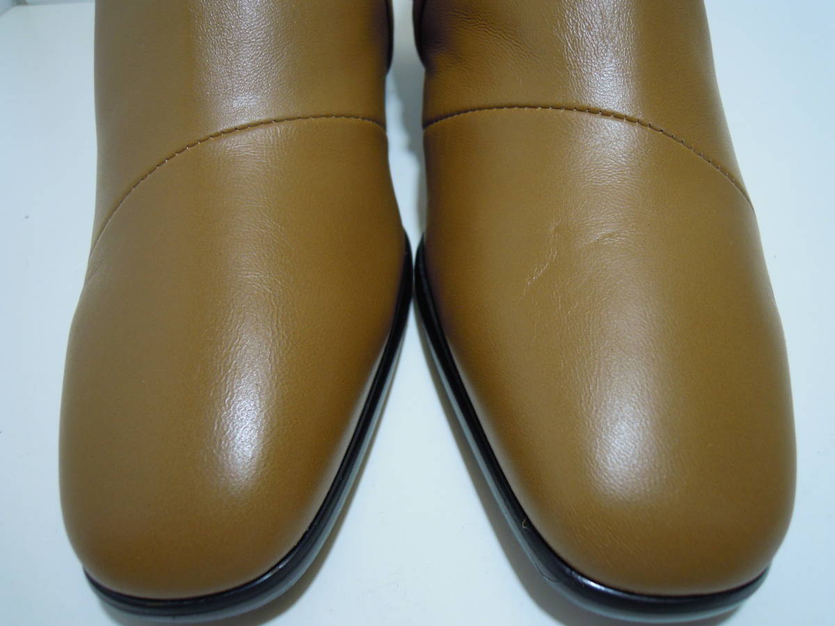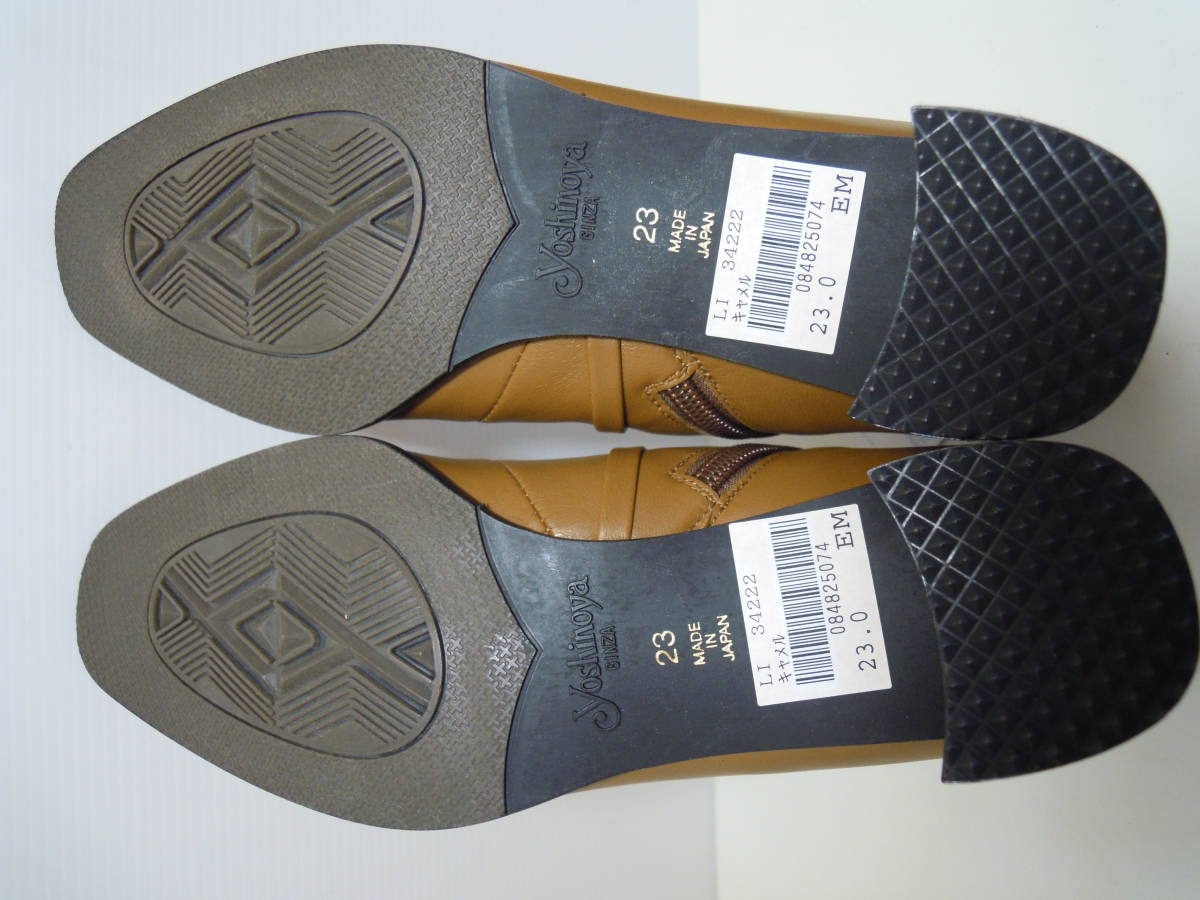 | 【ブランド・形態】 GINZA Yoshinoya 銀座ヨシノヤ 本革 晴雨兼用 ショートブーツ サイズ23.0cm 日本製です。 参考価格:¥40000-位のお品です。 【カラー】 キャメルです。 掲載の実物写真はPC環境や光の加減により実物と色合いが若干異なる場合があります。 【特徴】 防水レザーを使用した晴雨兼用なので、雨の日も安心です。 薄くて軽い、スムースレザーを使用した、スタイリッシュなショートブーツです。 防菌抗臭、速乾性のある素材でこだわりの優しい履き心地です。 ヒールは安定感のあるフラットタイプで、とても軽やかな履き心地。 ヒールがあまり得意ではない方も安心です。 そして斜め掛けの華奢なベルト飾りがシンプルなデザインのアクセントです。 サイドファスナー付きです。 ヒールがあるのでパンツにもスカートにもカッコ良く決まります。 ヒール高:約5.5cm 、最大幅:約8.0cm、全高:約18.0cm 【状態】 三越で購入して自宅保管していた未使用品になります。汚れ・しみなど有りません。 保存箱はありません。 【素材】 アッパー:天然皮革 アウトソール:合成底 【サイズ 】 23.0cm、 質量:490g #銀座ヨシノヤ #GINZA Yoshinoya | |||