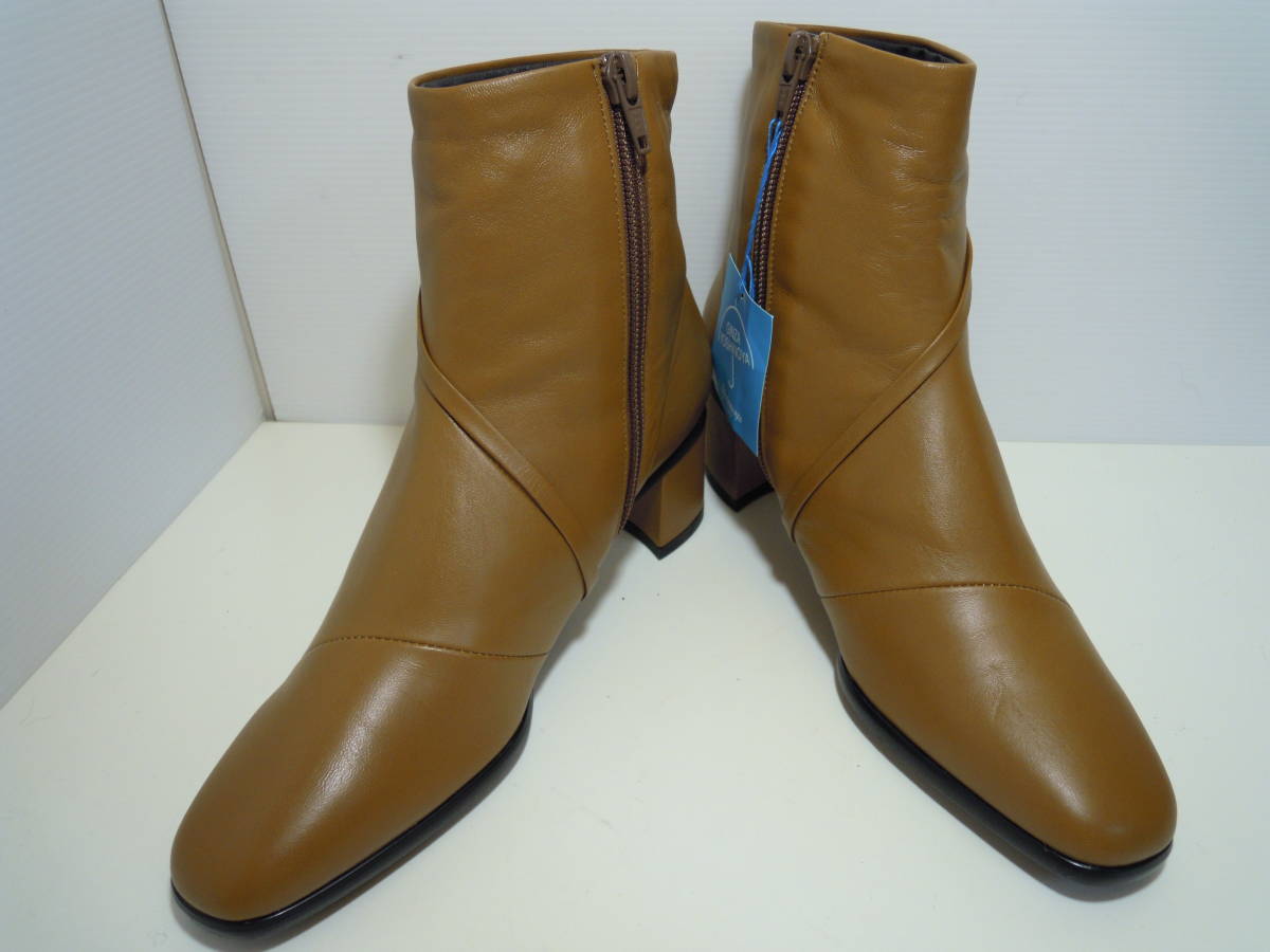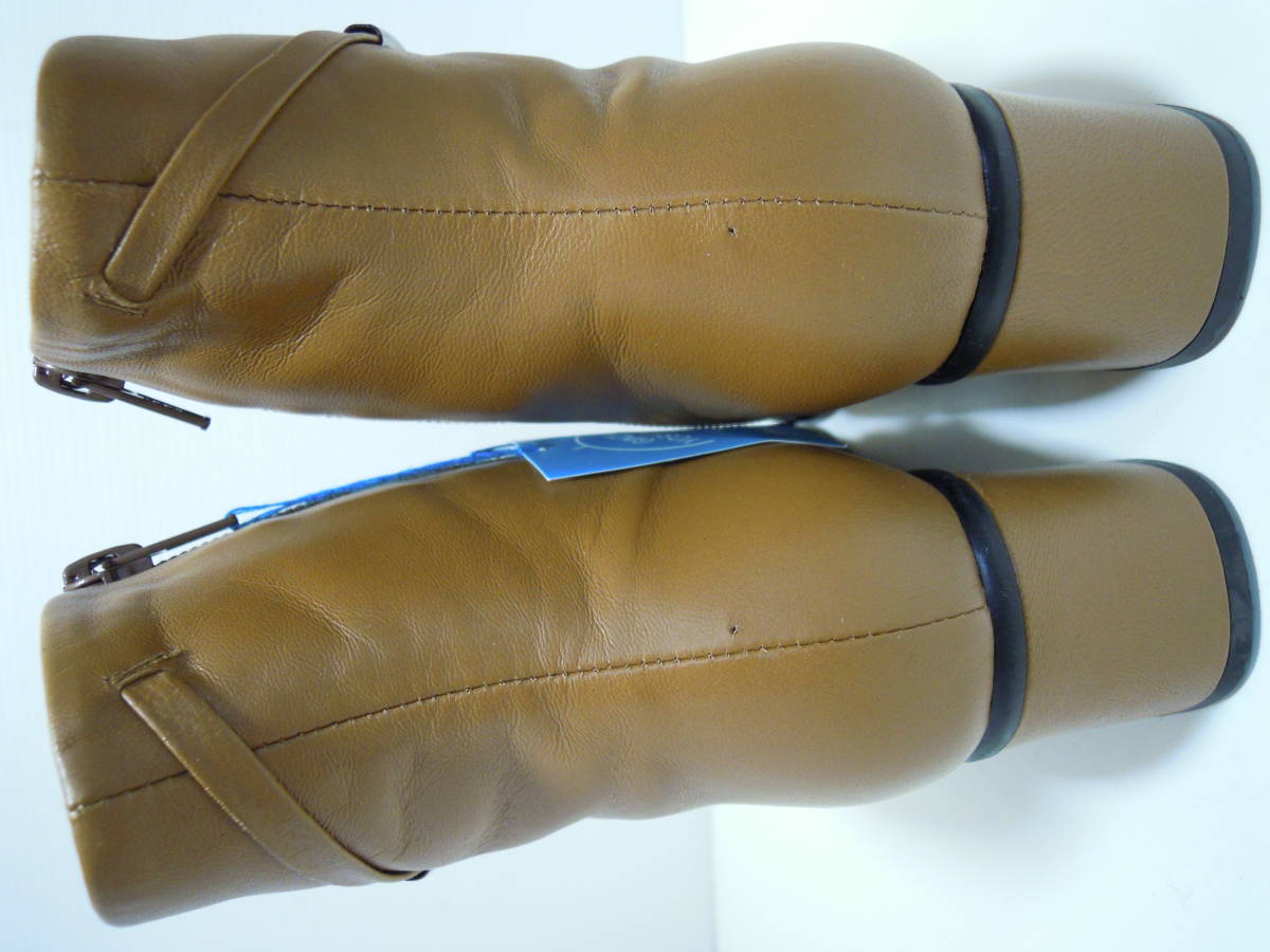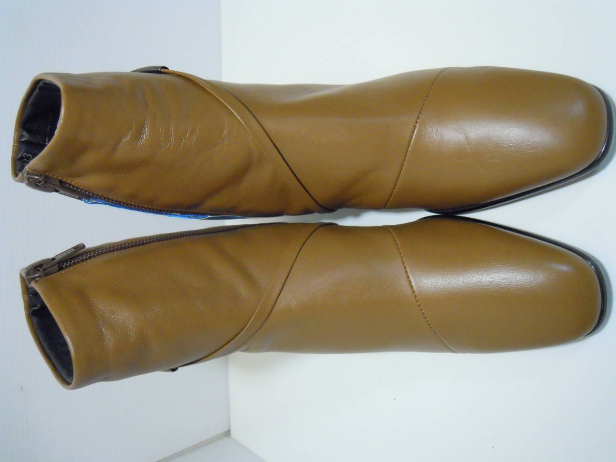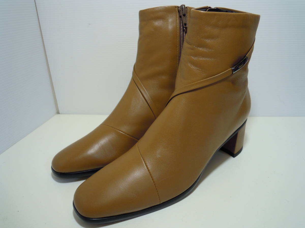 | 【ブランド・形態】 GINZA Yoshinoya 銀座ヨシノヤ 本革 晴雨兼用 ショートブーツ サイズ23.0cm 日本製です。 参考価格:¥40000-位のお品です。 【カラー】 キャメルです。 掲載の実物写真はPC環境や光の加減により実物と色合いが若干異なる場合があります。 【特徴】 防水レザーを使用した晴雨兼用なので、雨の日も安心です。 薄くて軽い、スムースレザーを使用した、スタイリッシュなショートブーツです。 防菌抗臭、速乾性のある素材でこだわりの優しい履き心地です。 ヒールは安定感のあるフラットタイプで、とても軽やかな履き心地。 ヒールがあまり得意ではない方も安心です。 そして斜め掛けの華奢なベルト飾りがシンプルなデザインのアクセントです。 サイドファスナー付きです。 ヒールがあるのでパンツにもスカートにもカッコ良く決まります。 ヒール高:約5.5cm 、最大幅:約8.0cm、全高:約18.0cm 【状態】 三越で購入して自宅保管していた未使用品になります。汚れ・しみなど有りません。 保存箱はありません。 【素材】 アッパー:天然皮革 アウトソール:合成底 【サイズ 】 23.0cm、 質量:490g #銀座ヨシノヤ #GINZA Yoshinoya | |||