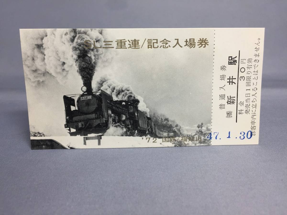 SL三重連/記念入場券 1972年 新井駅発行 【K5-34】