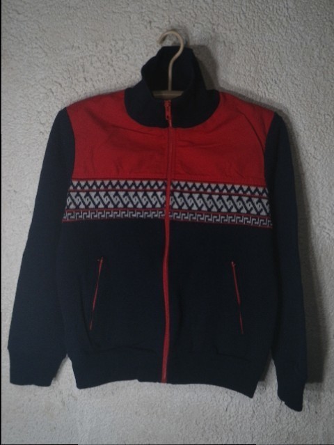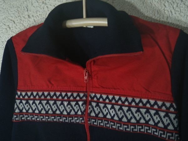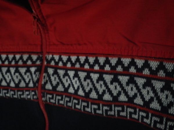 フルジップで切り替えの真ん中に民族風 ネイティブ柄トライバルのような柄のニットがありかわいいです。