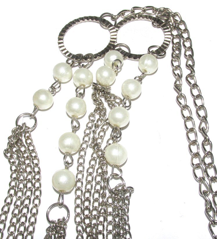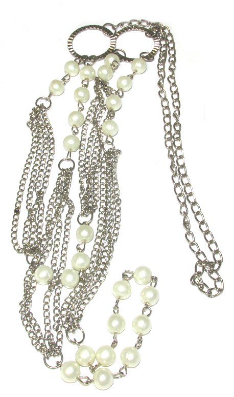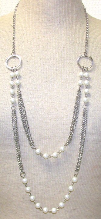 パール×ツイストサークル・シルバーチェーン・ロング★ネックレス