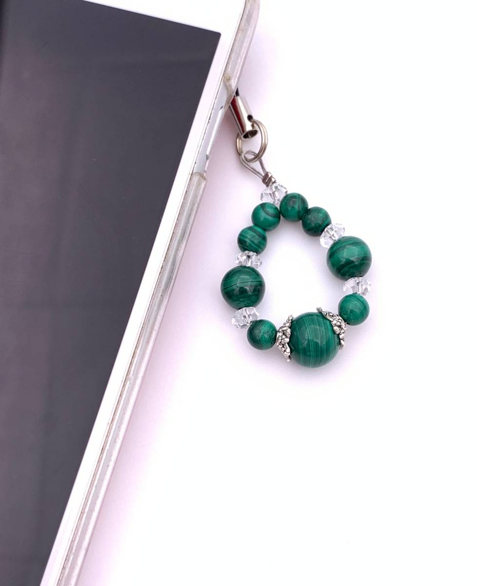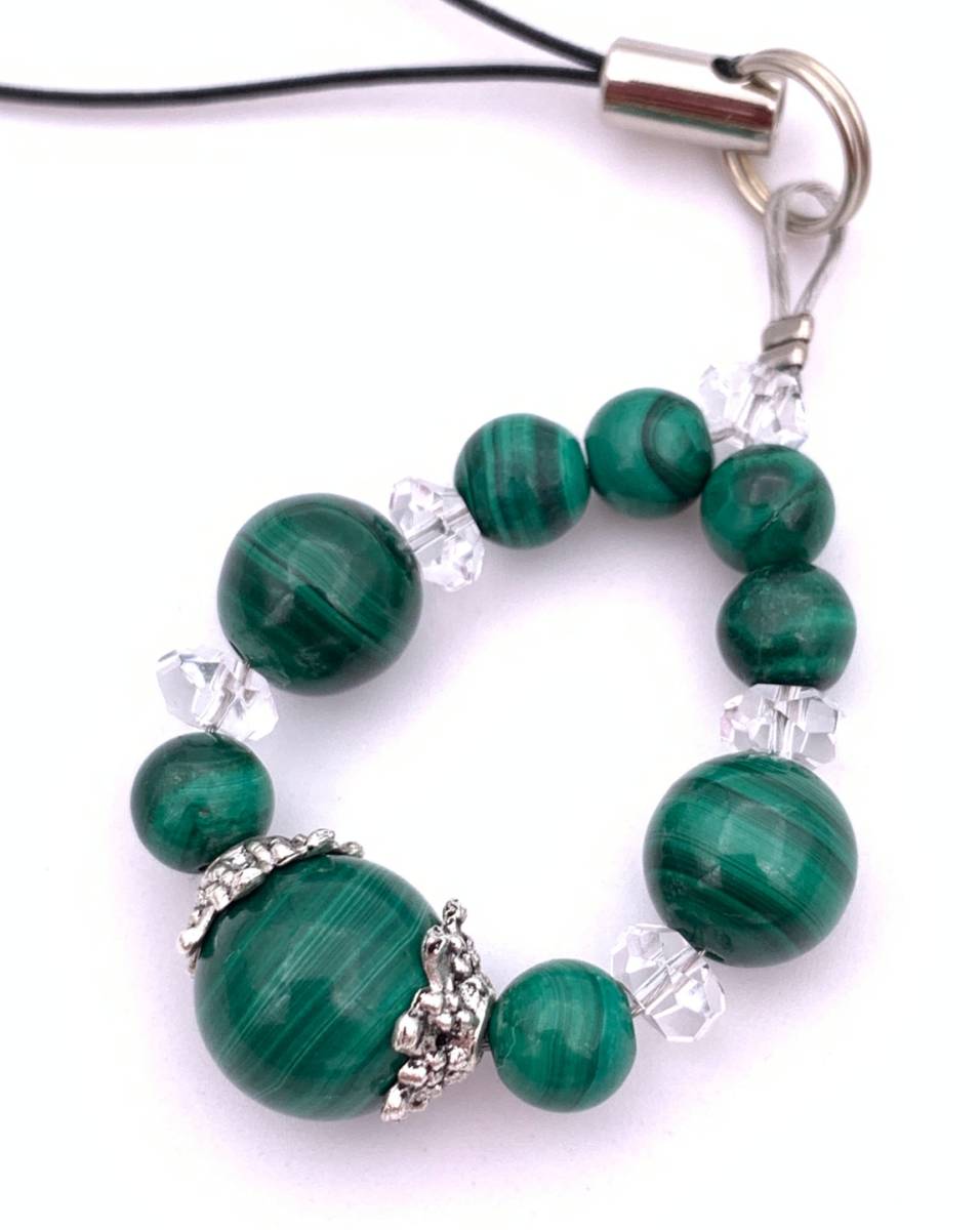 手作り!オリジナル★天然石マラカイトAAのストラップ