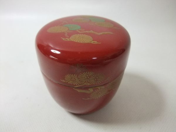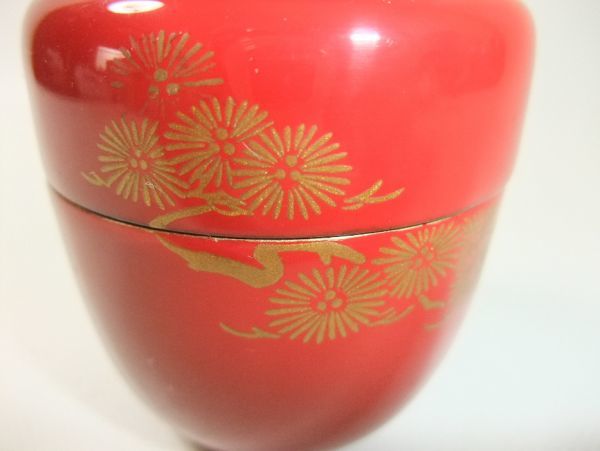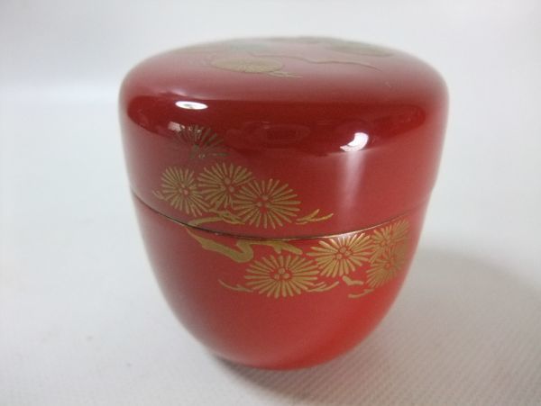 【睦】金蒔絵 棗 茶入れ 本漆器 盛り上 菊文茶道具 天然木 ■