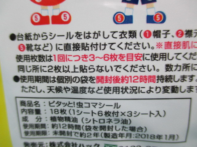 | 特別サービス品! 未使用品・訳あり★使用期限切れ 虫よけシール 虫コマシール 18枚入り×2点 衣類などに貼るだけ シトロネラ油使用 |