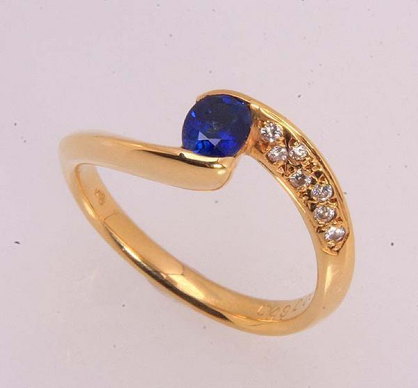 《質屋出品》k18★サファイア+ダイアデザインリングです。