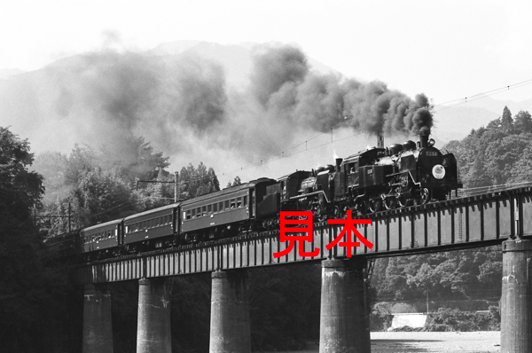 鉄道写真、35ミリネガデータ、106382130006、C11-312+C56-44+旧客、大井川鐵道、青部~崎平(大井川第二鉄橋)1994.10.14(2498×1656)