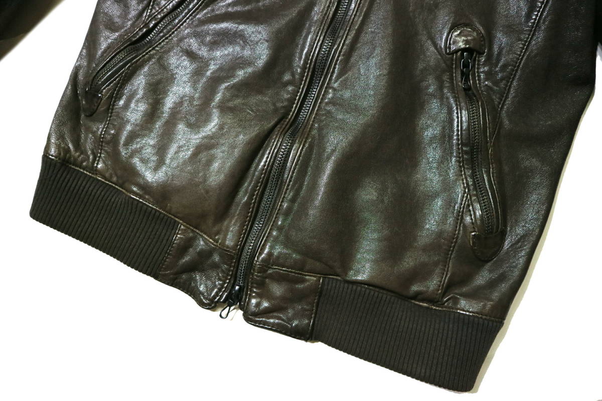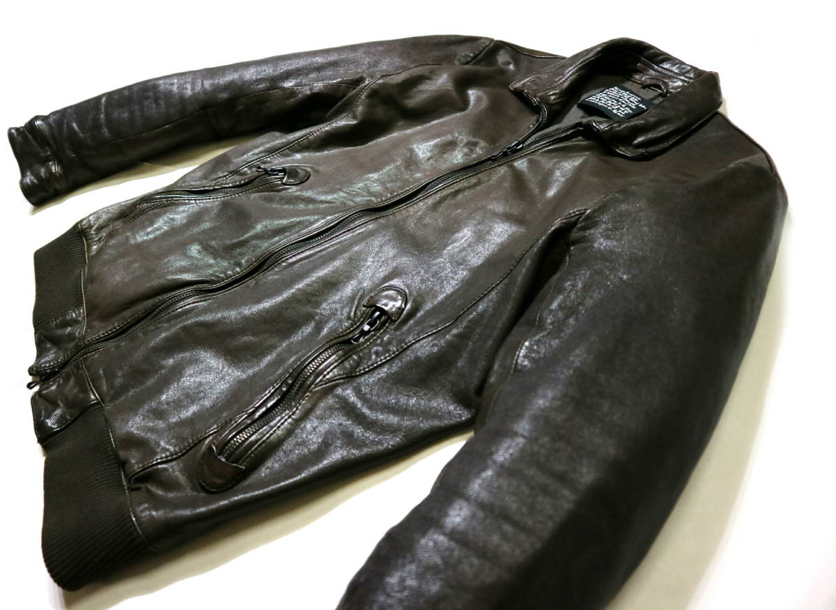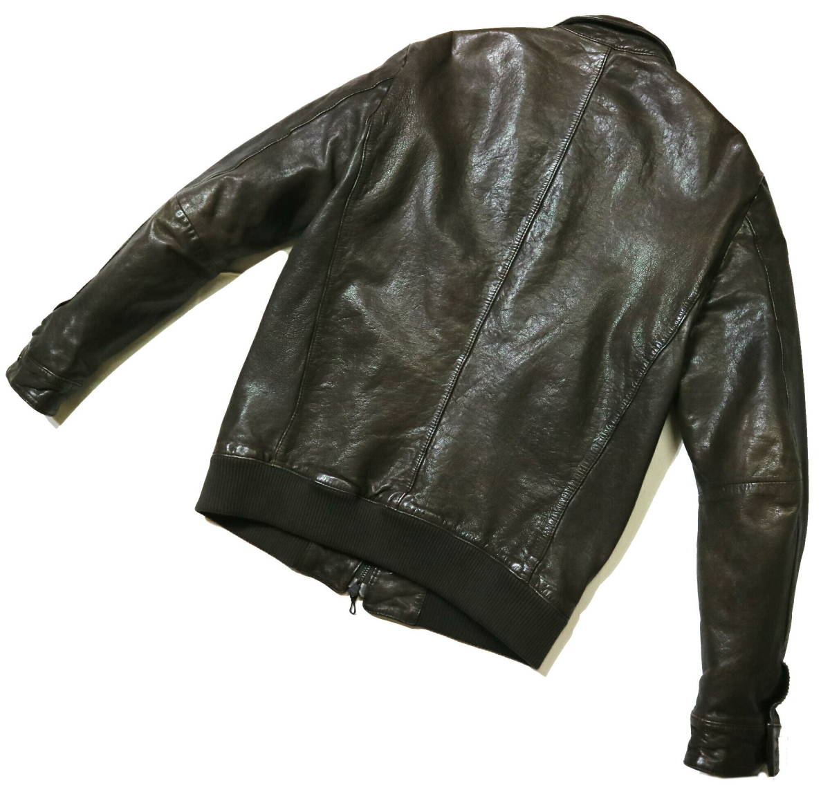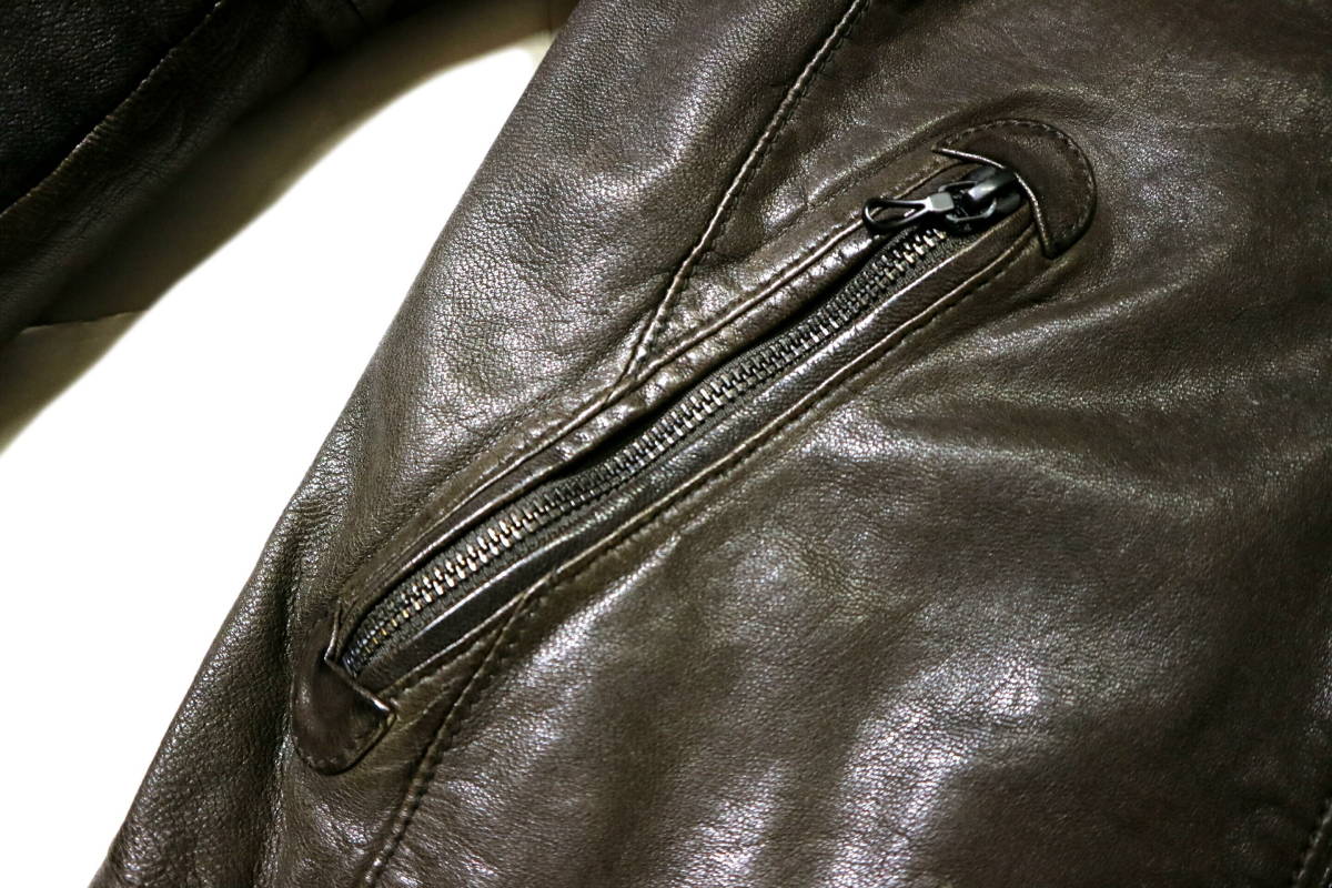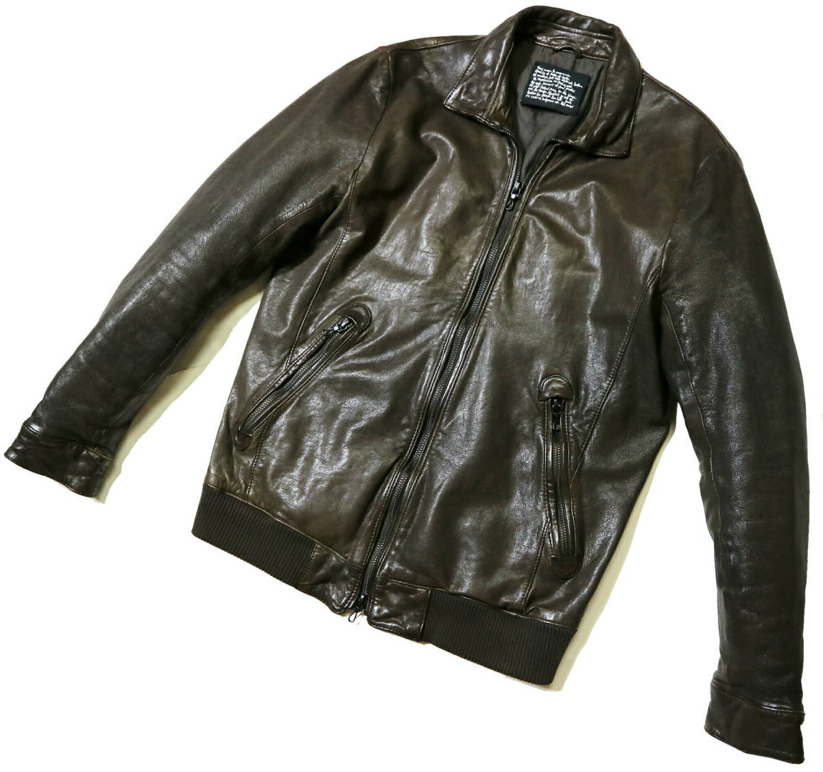 ・少しのハリ感としなやかさの着やすくしっかりとした山羊革、程よくタイトめのかなり雰囲気の良い作りです。ナノ・ユニバースの山羊革のレザージャケットです。