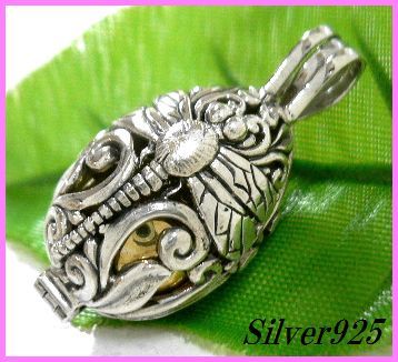 シルバー925銀のトンボ バスケット ガムランボール/ペンダントやストラップに◎