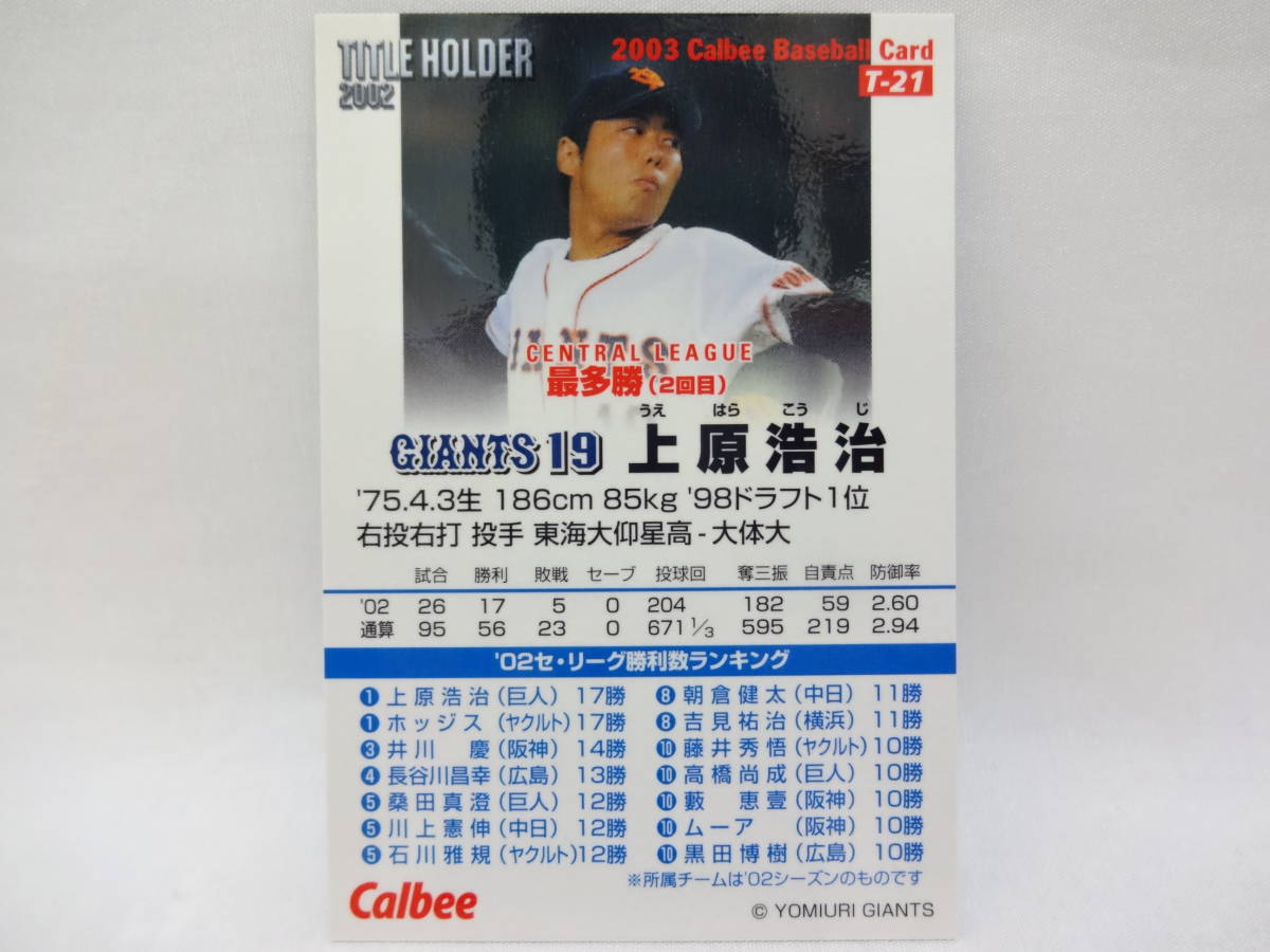 2003 カルビー TITLE HOLDER 2002 シルバーサインパラレル T-21 読売ジャイアンツ 19 上原 浩治