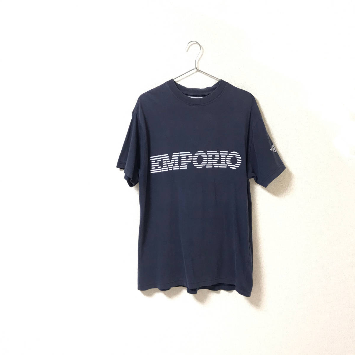 90s★emporio armani エンポリオ アルマーニ★メンズ 半袖 ビッグロゴ プリント Tシャツ コットン size M