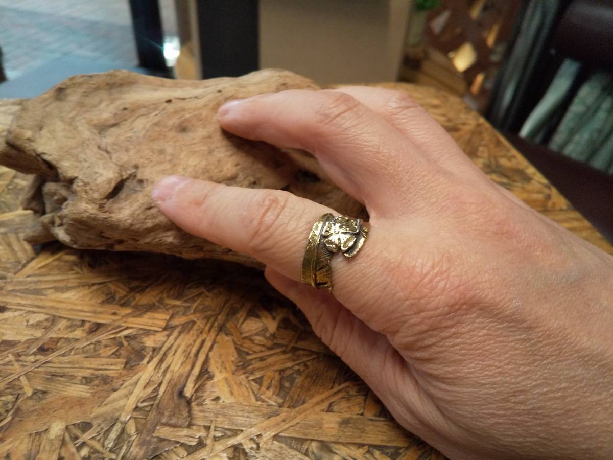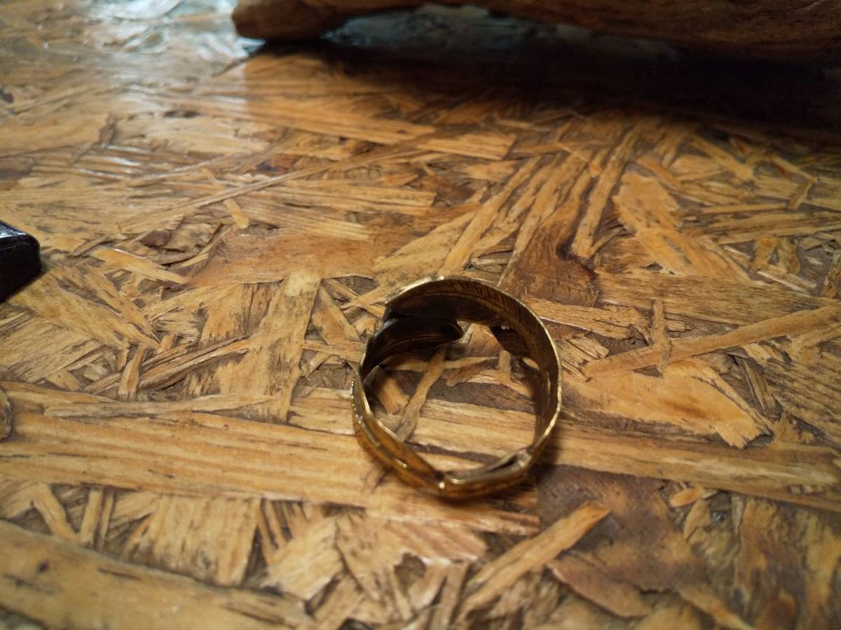 真鍮フェザーを2枚合わせてリングにしました。
