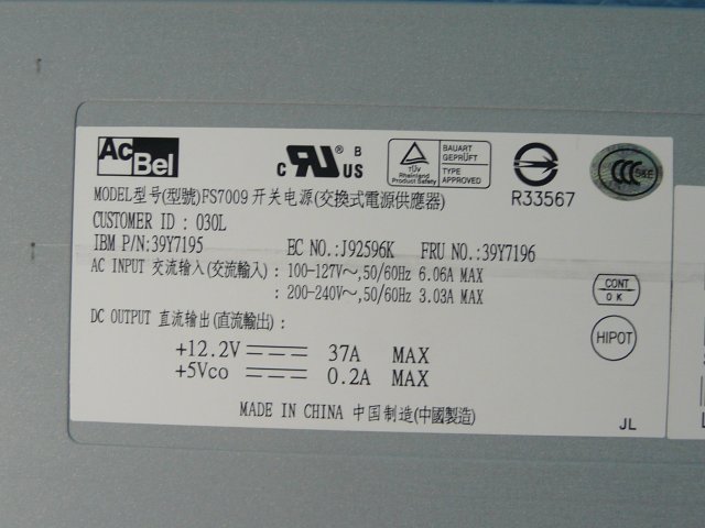 IBM System x3350 の 冗長 電源 450W FS7009 39Y7195 39Y7196 AcBel