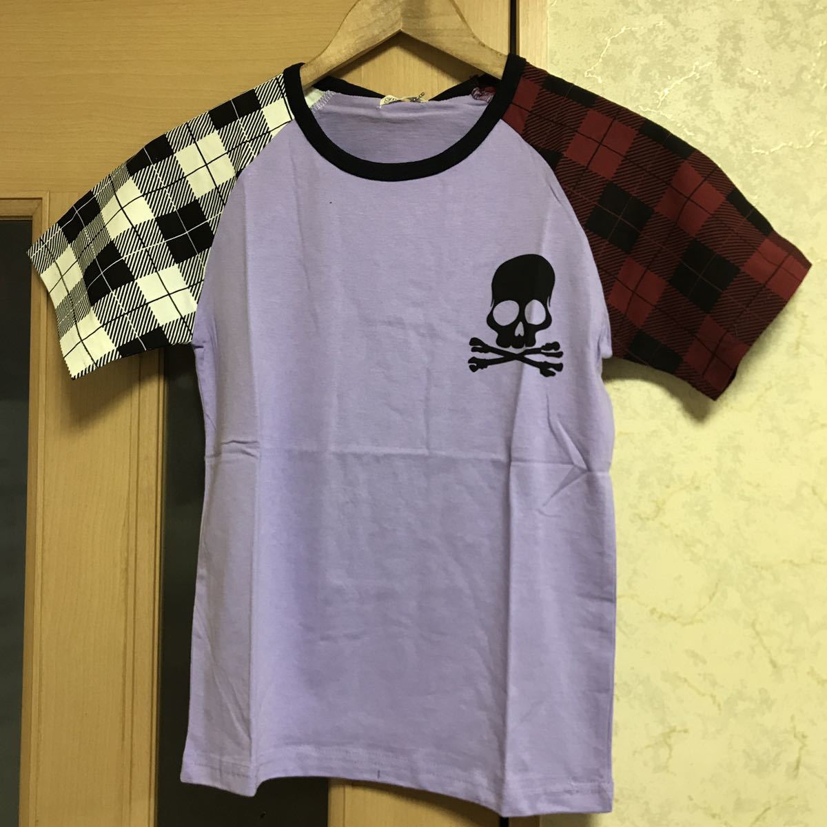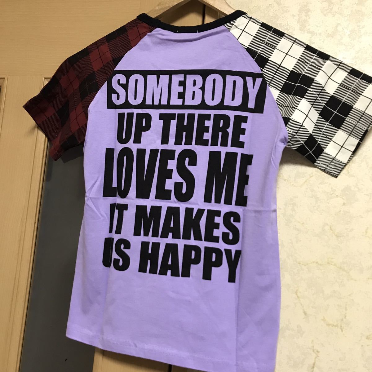☆前後プリントや袖チェック柄がオシャレな半袖Tシャツ