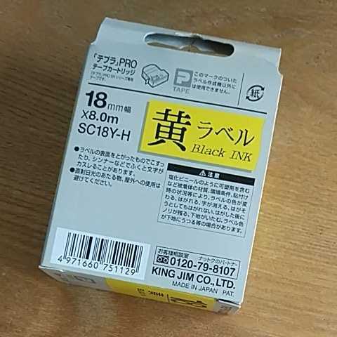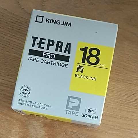 KING JIM製のTEPRA、テプラPROテープカートリッジ(パステル)<黄ラベル黒文字 18mm SC18Y-H>です。