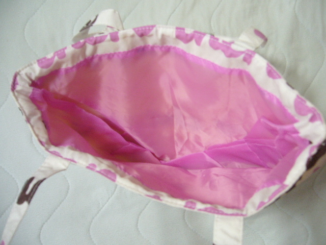 Cher シェル 白茶紫 ふあふあ 丈夫 トートバッグ かばん バッグ サイズ340-200-120㎜ 未使用ですが持ち手部に汚れ1箇所あり を出品します。