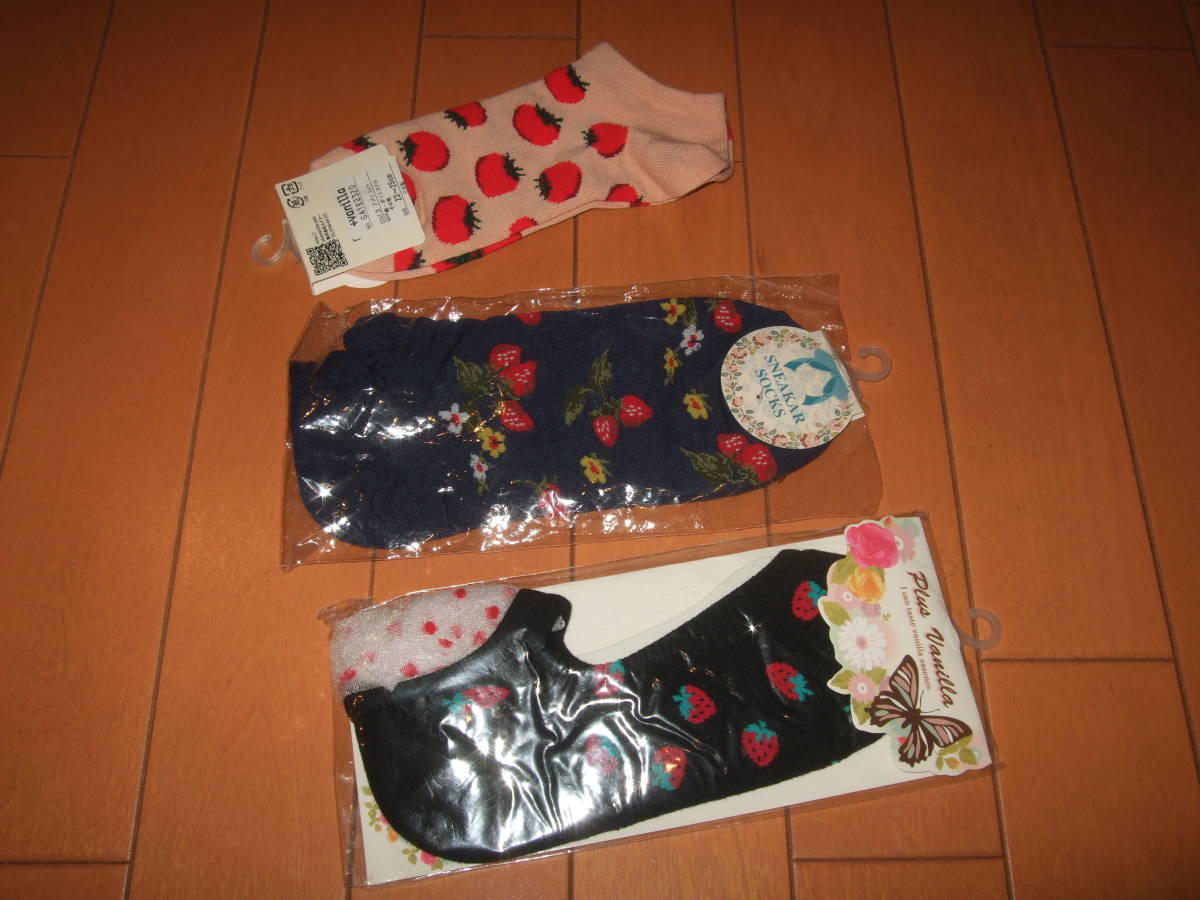 ブランド、メーカー:スニーカーソックス3足セット(いちご柄)