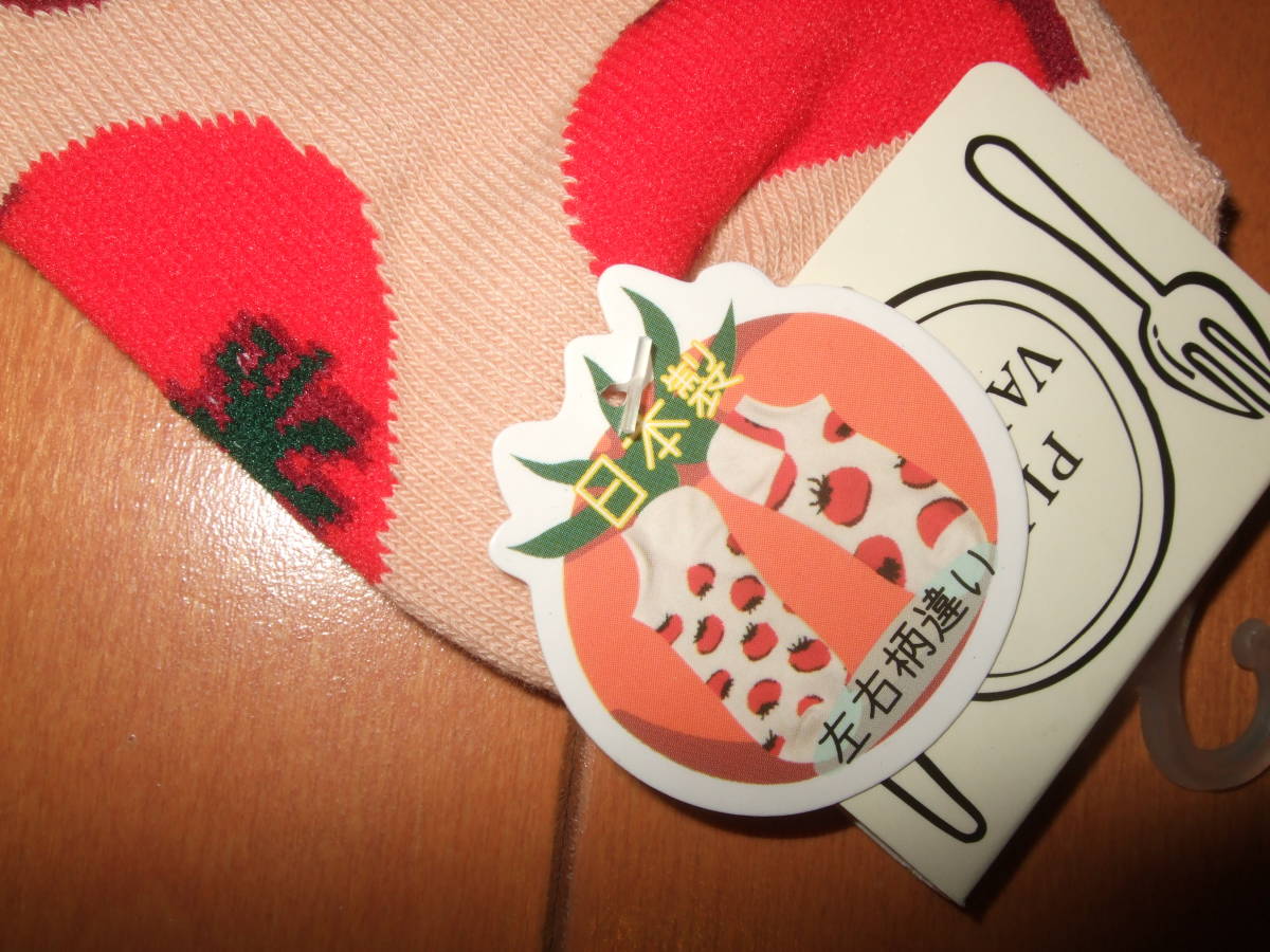 詳細:①トマト柄(左右柄違いでトマトのサイズが異なります)②イチゴ柄のスニーカーソックス②イチゴ柄のシンプルなネイビーのスニーカーソックス ③イチゴのアンクルストラップカバーソックス (アンクル部分にチュールフリルがあってとっても可愛いです)