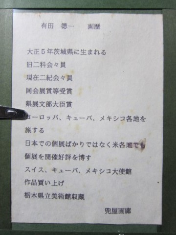 ・コレクション保管していた 有田 徳一 画伯の真作です。良好です。