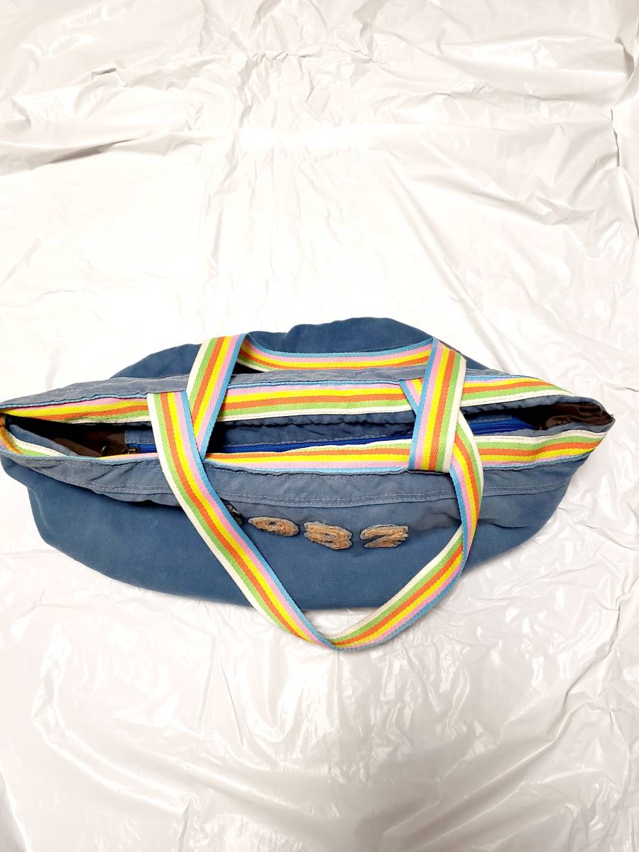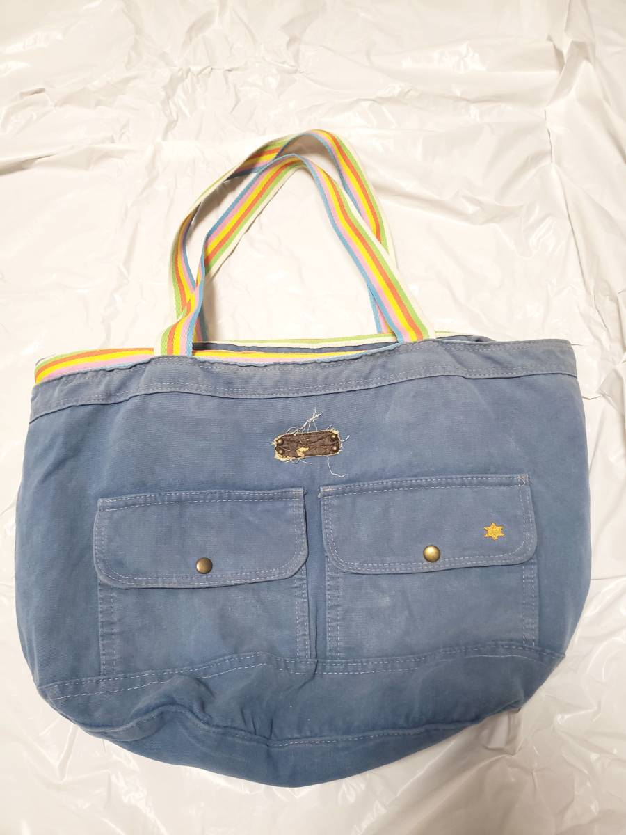 カラフル スター柄 トート ブルー アンティーク・古着風