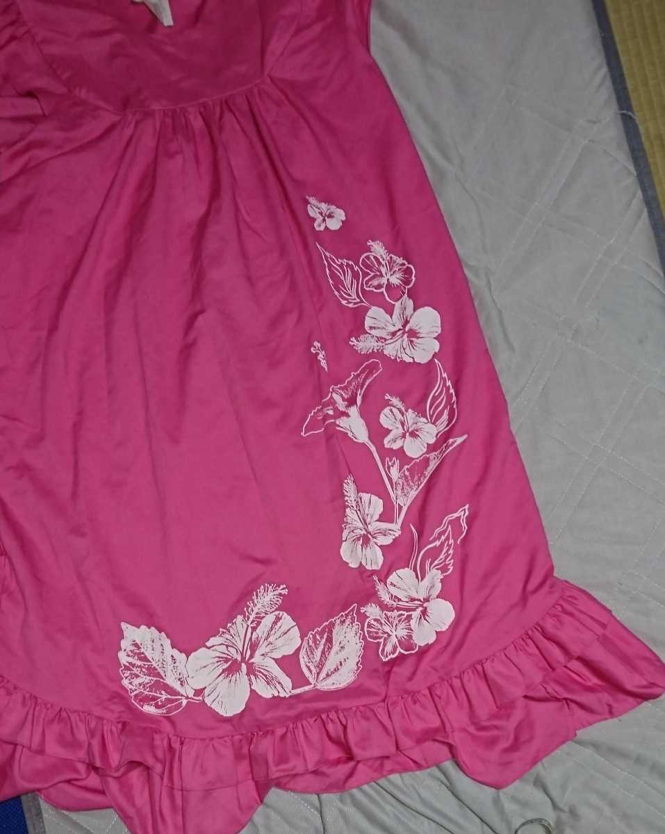 Hans Jutte HAWAII ロングワンピース Lサイズです。コチラで測ったサイズは、総丈約110センチ&身幅約48センチ(脇の下あたり)です。状態の方は、特に気になるような汚れや傷みなどありません。問題なく着ていただけます。あと、送料無料で送ります。では、よろしくお願いします。