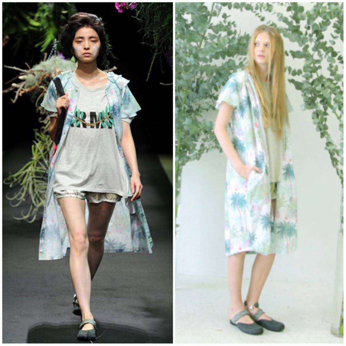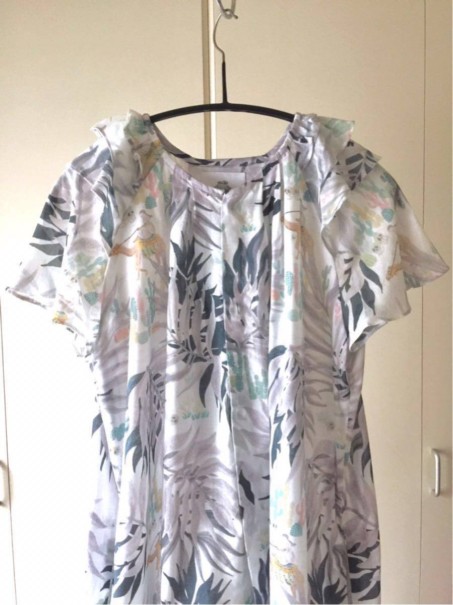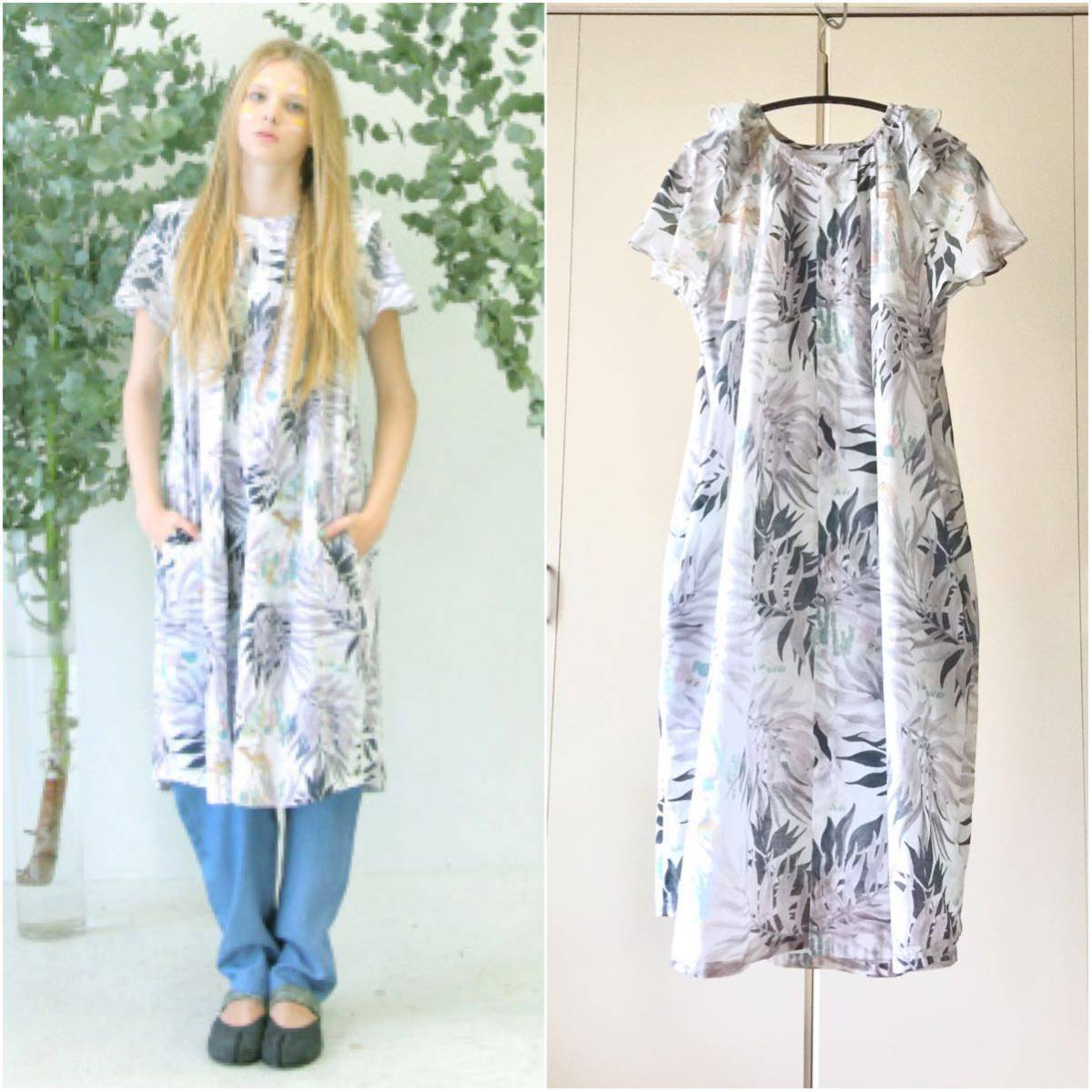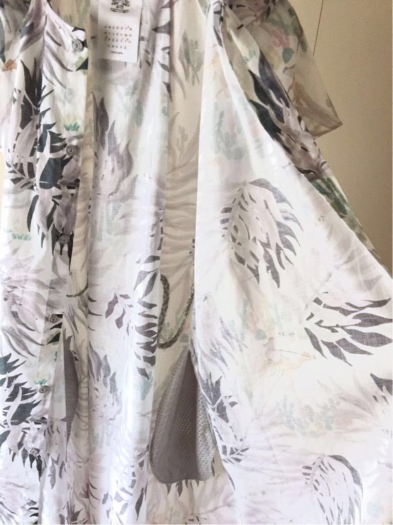 オリジナル柄テキスタイルによるシャツガウン・ワンピースで使える2wayトップス。