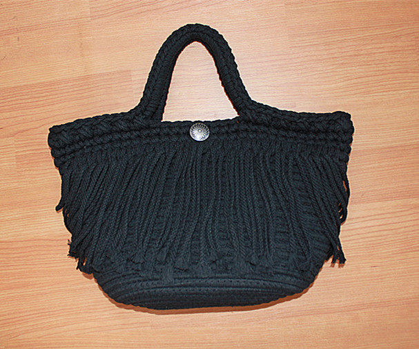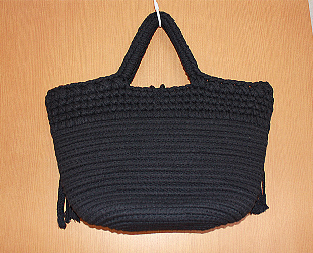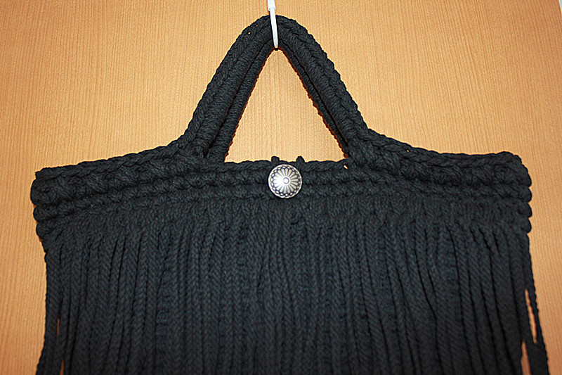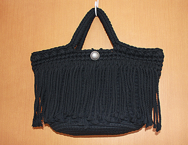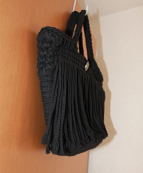新作マクラメ編みフリンジ付きトートバッグ・黒