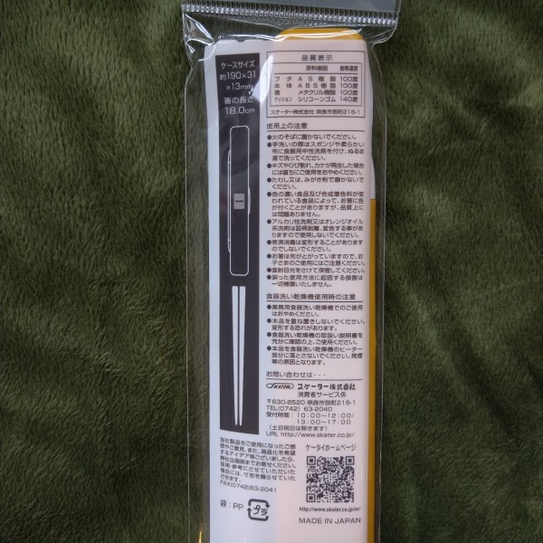 サイズ:箸=長さ18cm 箸箱=幅19×奥行3.1×高さ1.3cm
