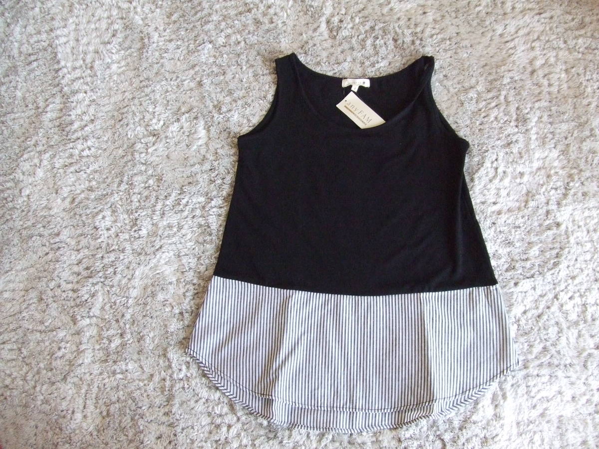 ![]() 商品説明★anyFAM*エニィファム*ノースリーブ*裾出し*ストライプ*新品タグ付*シャツテイル*爽やか*です。 ポリエステル59% レーヨン35% ポリウレタン6% 別布綿100% ショップ購入後自宅保管しておりました。これ1着で重ね着コーディネートができます。ただいま色々断捨離中です。 ★サイズ38 Mサイズ