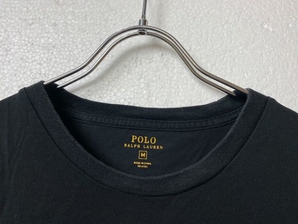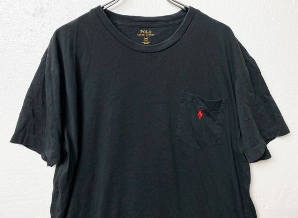 ポロラルフローレン クルーネック 半袖 ポケット付きTシャツ (M) ポケT POLO 黒 ブラック 無地