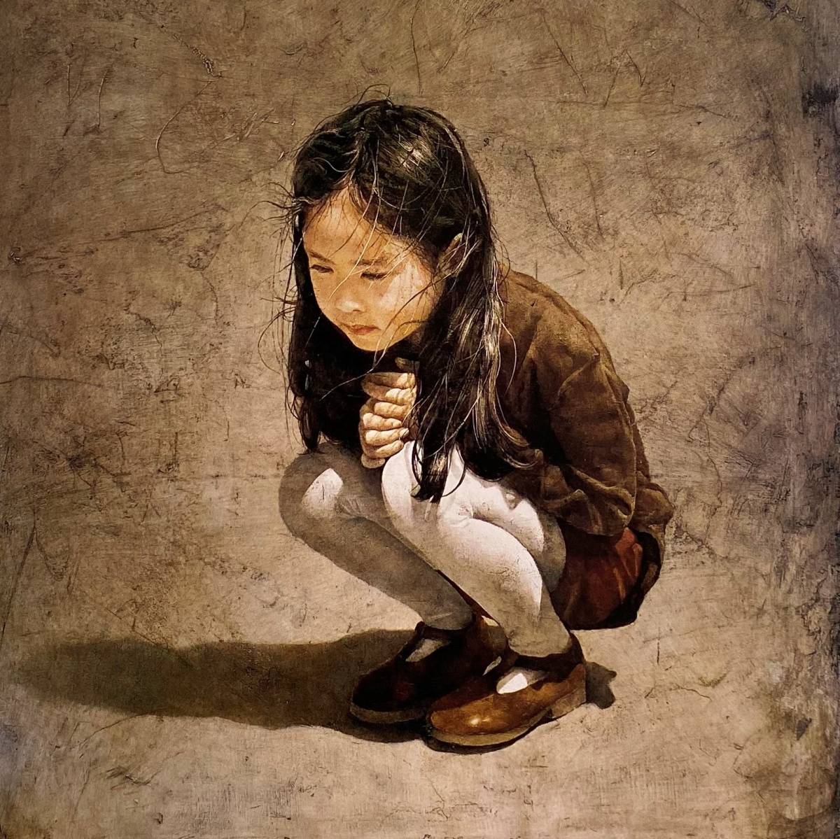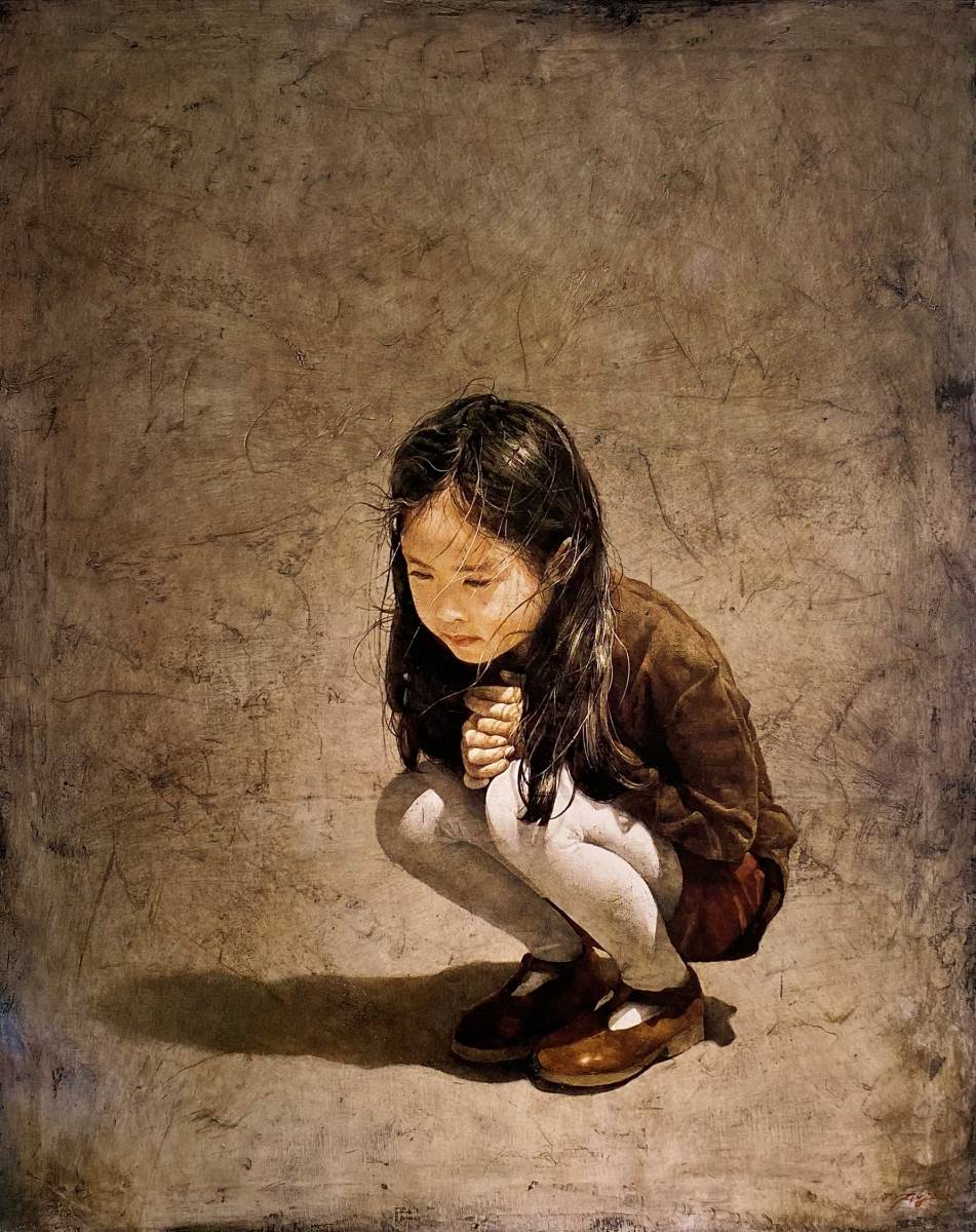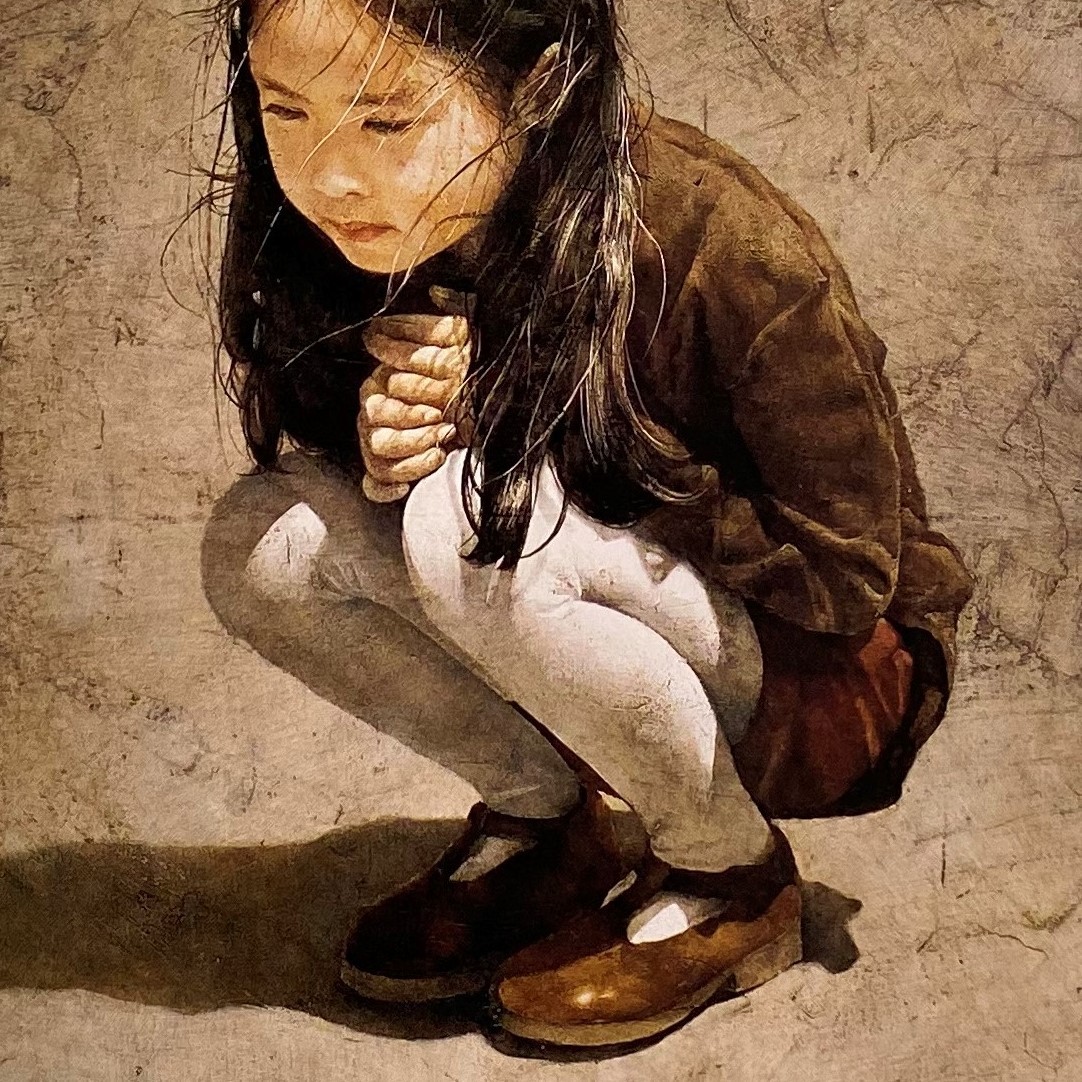 藤井勉、【ひとり】、希少画集より、新品高級額、マット額装付、送料込み
