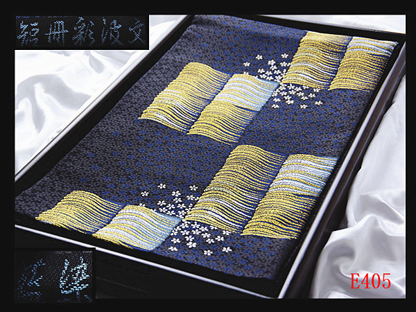 【E405】厳選西陣 藍染 短冊彩波文 冴える美しき“藍”の色彩 六通高級正絹純金糸美術袋帯 新品同様 ◇検◇簪着物名古屋帯帯締め
