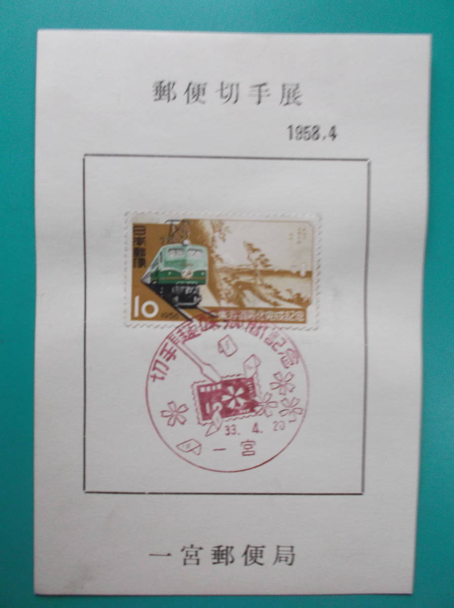 ①    東海道電化 10円 切手趣味週間記念印 一宮郵便局 昭和33年4月20日  郵便切手帳台紙